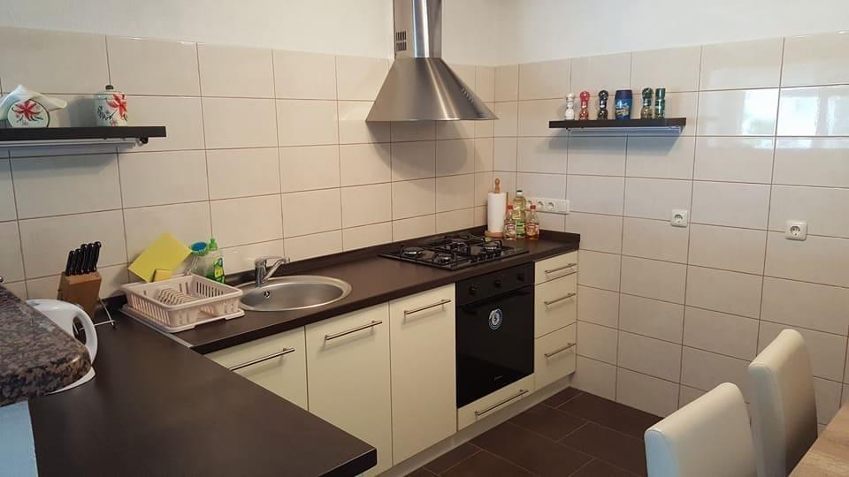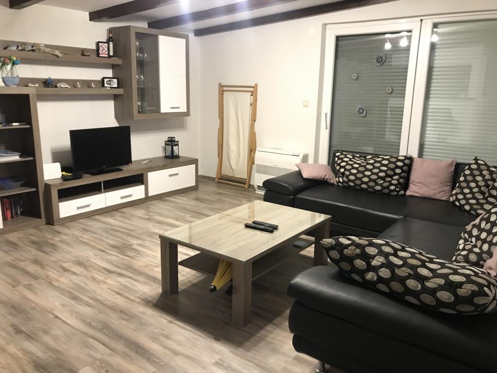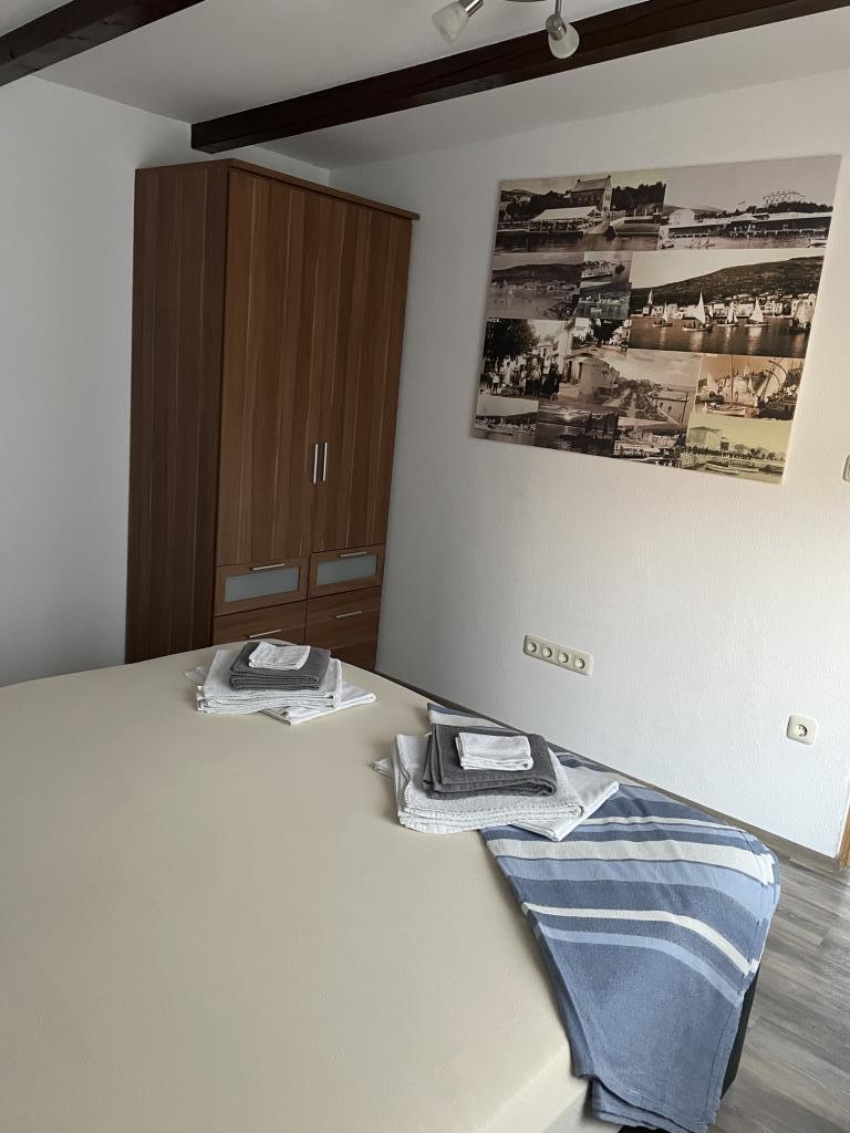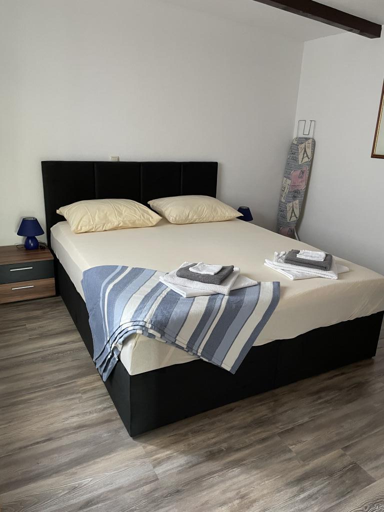 The apartment is located on the 1st floor of a family house with a large separate terrace and a view of the sea. It is located approx. 350m from the sea and the beach and the town center. It consists of two double bedrooms, living room, equipped kitchen with dining room, bathroom (washing machine). Fully equipped, wi-fi, air conditioning, parking in the yard of the house.