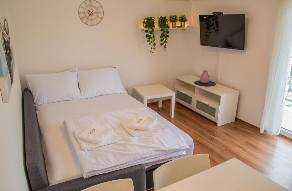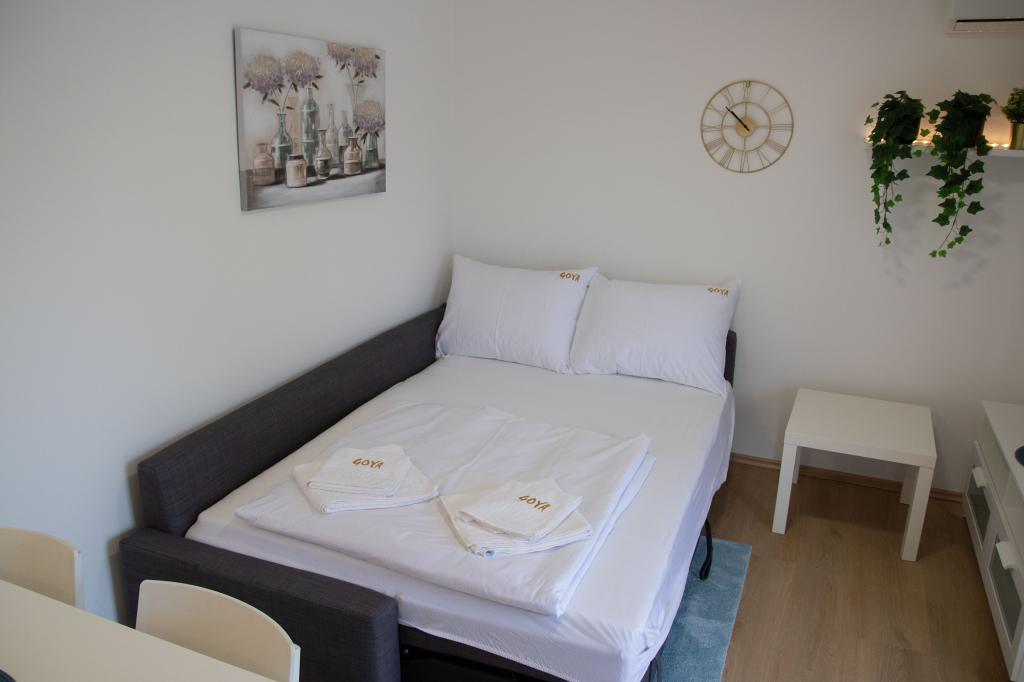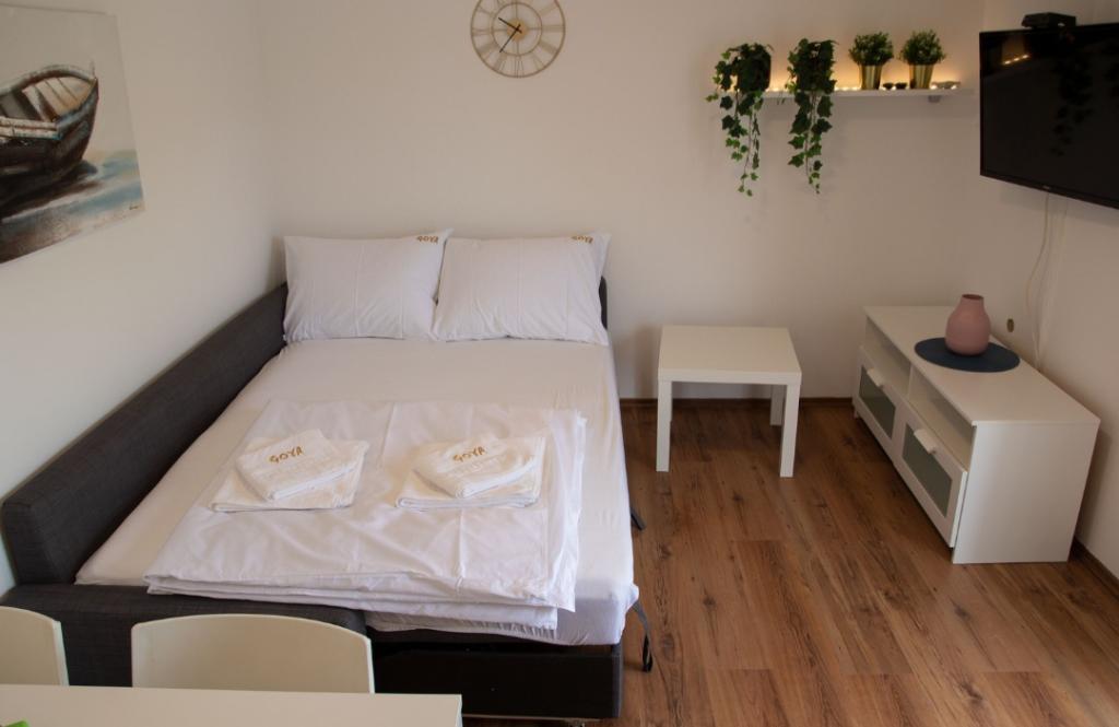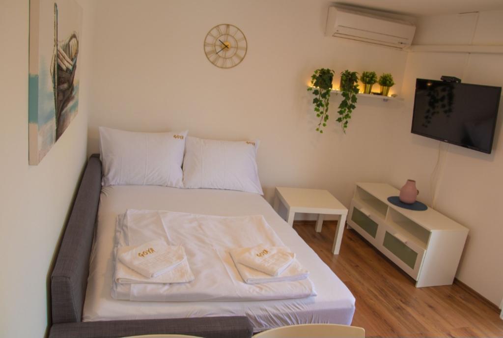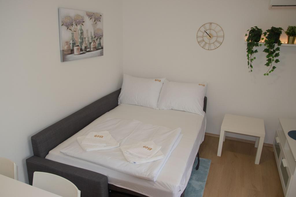 Apartments Goya are located in Selc, in the Primorje-Gorski Kotar County, in the very center of Selc and near Polača beach. The units are air-conditioned and offer a view of the sea. They include tiled floors, a private bathroom, a flat-screen TV, free WiFi, a desk, a living room, an equipped kitchen and a balcony. All units also include a seating and dining area. The apartment also offers a terrace. Polača beach is 50 meters from the Goya apartment, and Rokan and Poli mora beaches are 400 meters away. The nearest airport, Rijeka Airport, is located 26 km from the property. A free shuttle from/to the airport is available.