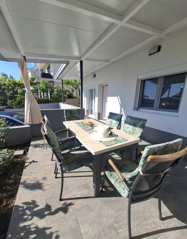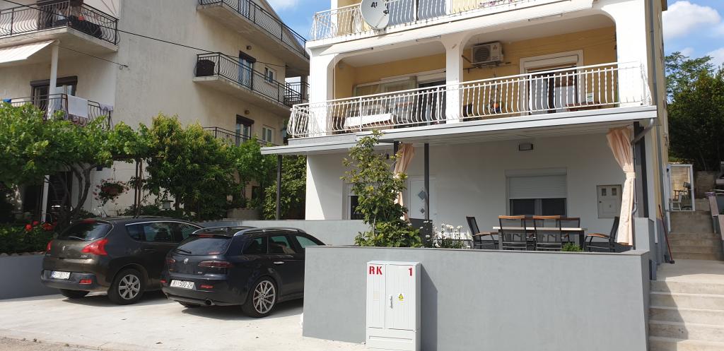 Apartment 1 is located on the ground floor of a family house with a large private terrace and partial sea view. Fully equipped, air conditioning, internet, parking. It is located approximately 300 m from the sea and beach and the town center. It consists of two double bedrooms (one with a double bed, one with two single beds), a living room, an equipped kitchen with a dining room (dishwasher), a bathroom (washing machine) and a separate toilet. Parking for 1 vehicle is provided in the courtyard of the house. The studio apartment is located on the ground floor (high ground floor) of the family house. It has a kitchen, a double bed 160x200 cm, a bathroom, air conditioning and a small terrace in front of the studio. Shared use of the barbecue. Apartment Lea is located on the 2nd floor. It has 2 bedrooms, an equipped kitchen, a bathroom (washing machine), air conditioning, a large terrace with a sea view. Parking for 1 car is provided in the courtyard of the house.