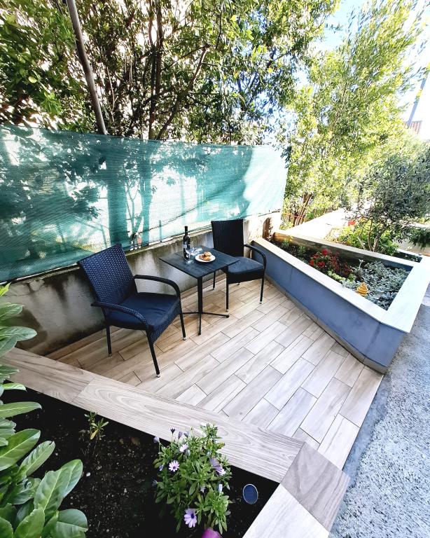 Very dear and kind hosts. Beautiful newly renovated studio apartment with a charming terrace in front overlooking the sea, the beach nearby. It has everything you need to recharge your batteries. Special thanks to the landlady Marina for her kindness and kindness. Satisfied Slavonians