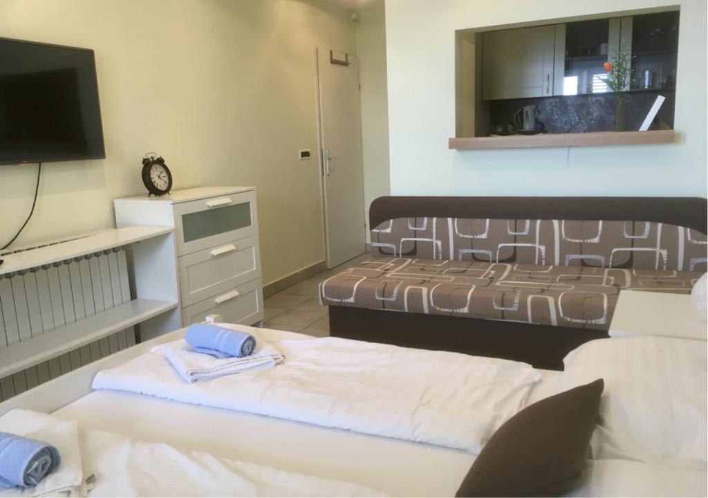 The apartment is neat, clean and tastefully furnished and well equipped. There are deck chairs, umbrellas, boards, bicycles, a children's playroom at your disposal... In addition to the location (first row to the sea), we are delighted with the very friendly hostess Branka, who is at the guest's service at all times. Unobtrusive, cheerful, well-intentioned and warm Mrs. Branka can be an example to all renters of what a good host should be. We recommend it to everyone, old and young, and families with children. The breakfast included in the price is varied and suitable for all tastes.