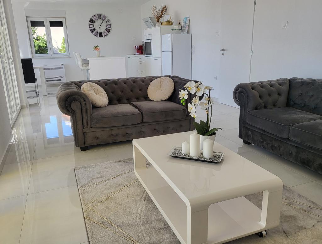 New apartments in the center of Selce, near Crikvenica - located on the high ground floor and on the 1st floor of the house. The apartments are spacious and airy, and consist of two bedrooms, bathroom, hallway, "open space" kitchen, dining room and living room and balcony. They have a beautiful view of the sea and the beach. They are located 2 minutes walk from the center of the town, shops, promenade, beach, restaurants and cafes. Parking is in the courtyard of the house. Air conditioning, wi-fi and parking are included in the price of accommodation. The price includes tourist (residence) tax and apartment cleaning. PETS ARE NOT ALLOWED.