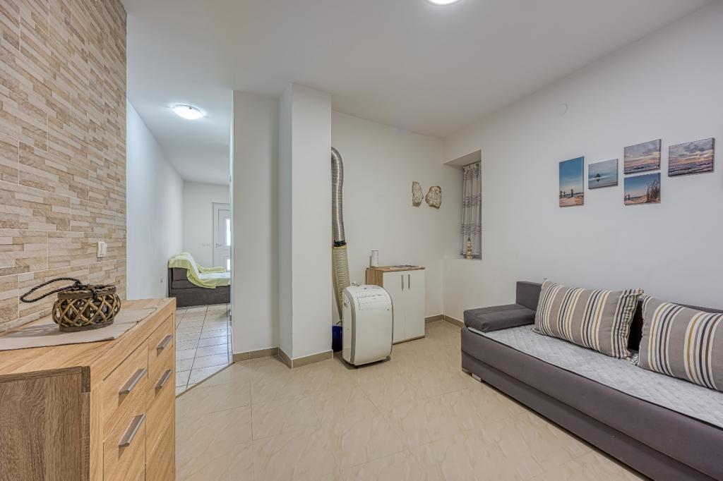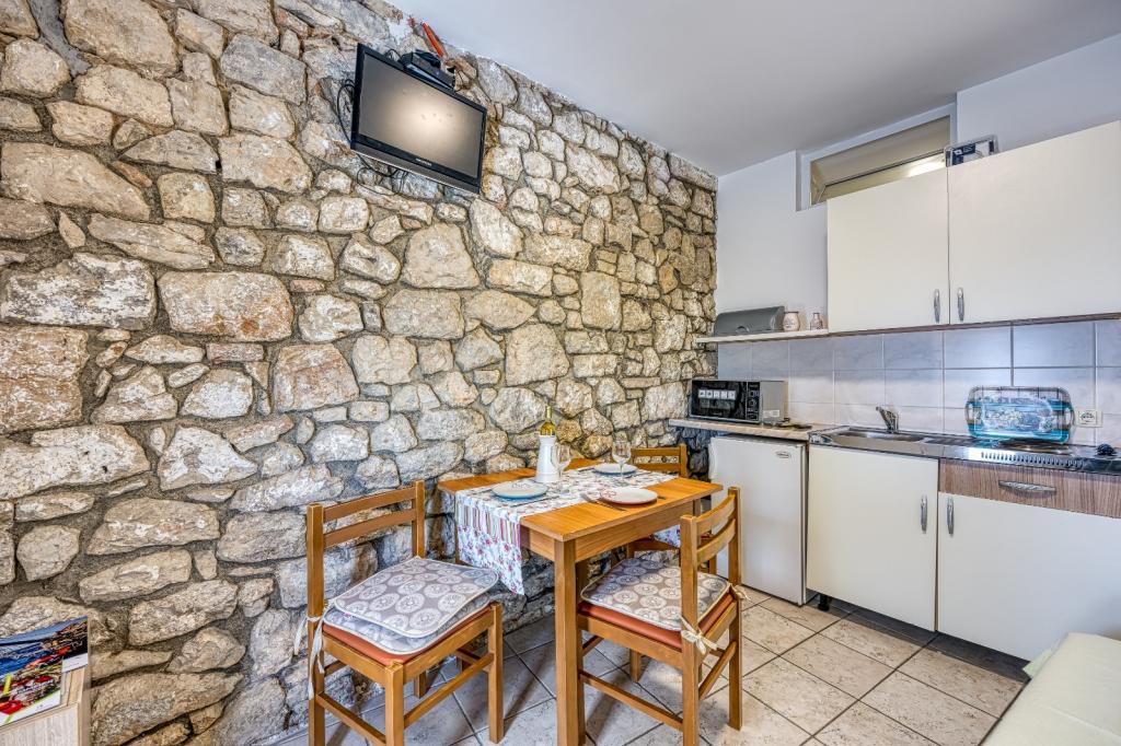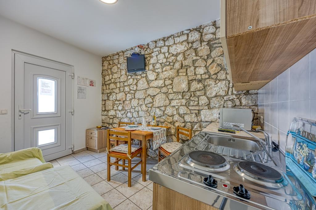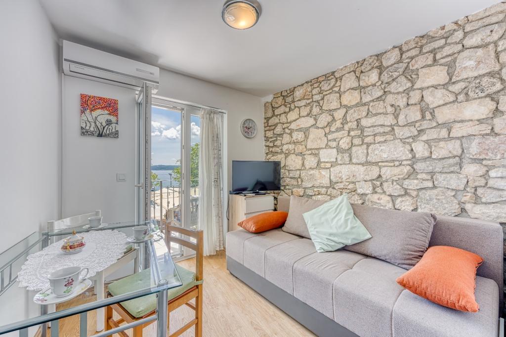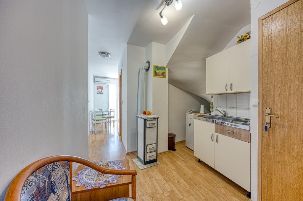 We were in June 2018 in four people. We occupied a flat on the ground floor of the building going from the street side. From the sea is the first floor. Renovated building, clean at the very sea. Close to everything. On the first floor is a bigger flat. The apartment has a bedroom with a double bed. A sofa bed in the kitchen. Being in Croatia, you do not sit at home. It was great for us. If there were questions, then on meil Z. Brylski