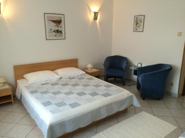 The apartments are located in a family house on the first floor. Each apartment has a separate entrance, balcony and parking in the front yard. In the yard behind the house are available for swing and slide for children. The apartments consist of a bedroom with three beds (baby cot or extra bed), fully equipped kitchen with dining area, bathroom with toilet. Apartments are equipped with air conditioning and satellite TV, and there is free use of the Internet.