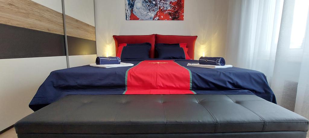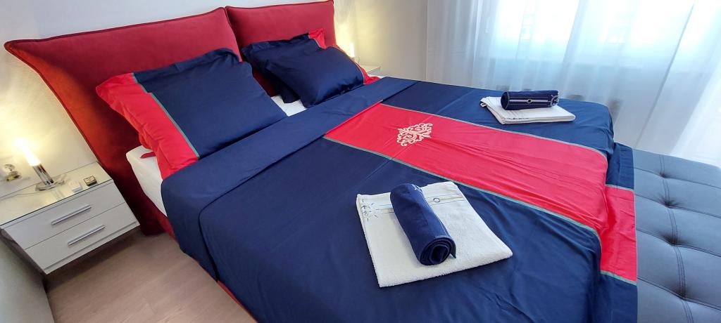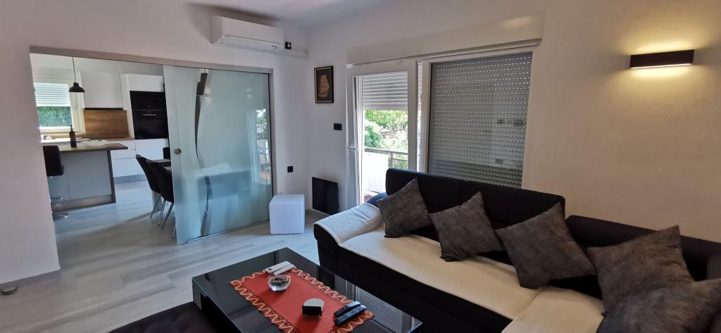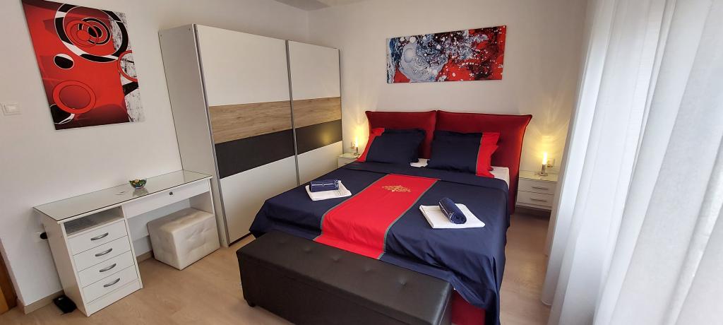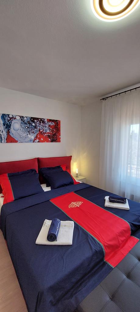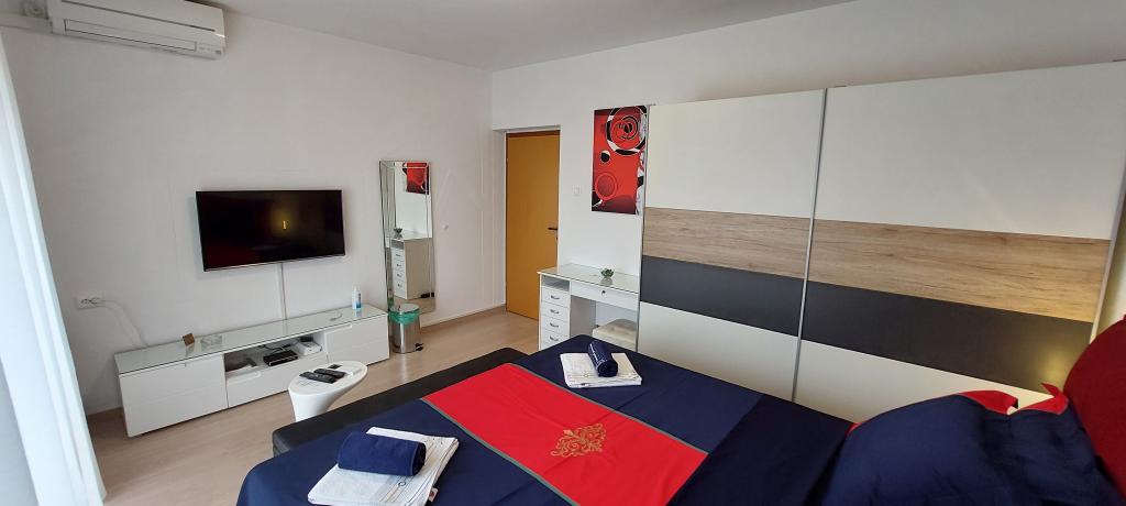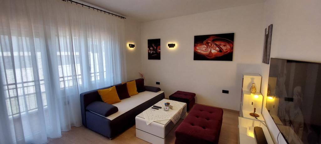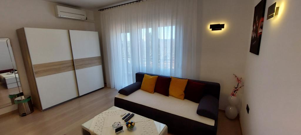 Fully and modernly equipped two apartments near the beach located on the mezzanine (apartment Perunika) and the first floor (apartment Bougenvilija). Both apartments have two balconies and secured parking in front of the house. A bedroom with a double bed, a living room with a sofa bed and a kitchen with a dining area are air-conditioned. Internet is free. The building is located 5 minutes' walk from the center and less than 2 minutes (100 meters) from the beach.
