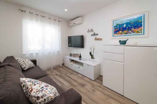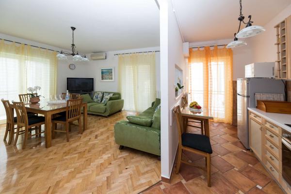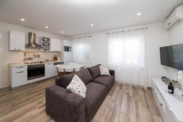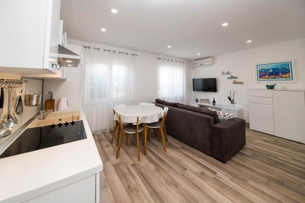 We had a wonderful vacation here in July 2023. The owners are very nice and accommodating. The owner showed us our apartment and explained everything. The owner allowed us to park our car in front of the apartment already in the morning. Excellent communication with the owners. The whole house is beautiful, arranged, maintained, yard full of flowers, everywhere very clean. We had complete privacy, peace. The apartment is brand new, modern and beautifully furnished, very clean and spacious enough. Two air conditioners, washing machine and dishwasher were excellent. We also used an iron and a first aid kit. The kitchen is well equipped, nothing was missing. Five people felt great there. We used the balcony with a view of Selce, the terrace is great for drying wet things from the beach. The apartment even has an extra room for inflatables, swimming equipment, scooters. The apartment is great. We appreciate the wonderful proximity to the center, to the shop, to the fruit and vegetable market, all within 2 minutes on foot. Poli Mora beach within 5 minutes on foot. The cleaning lady is very kind to us and the children, warm-hearted. We already have a reservation for summer 2024. We look forward to and recommend this wonderful accommodation.