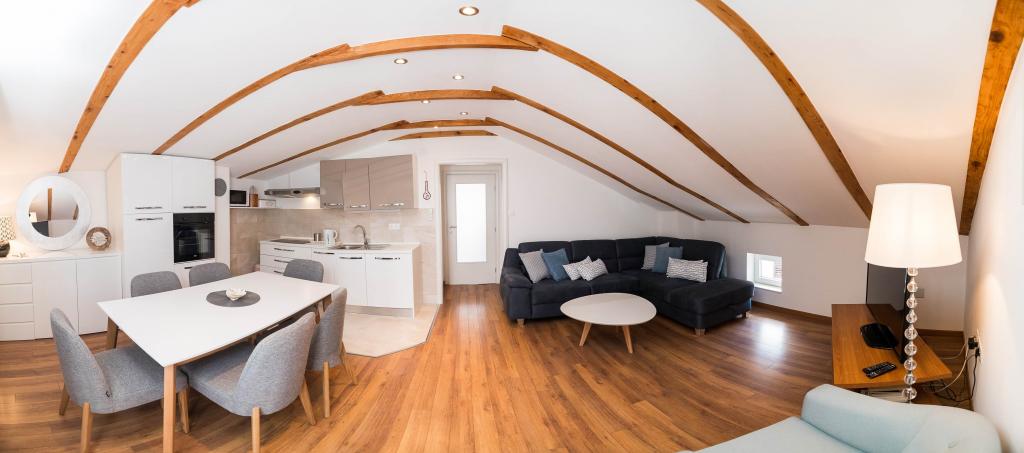 Read more Accommodation unitsArrival time 2 pm. Departure time 10 am. Advance payment for reservation 100 Euros Payment upon arrival at the apartment. Free parking provided. Tourist tax is not included in the price. The price of final cleaning of the apartment is: A2+1 40 Euros, A4+1 50 Euros, A6+1 60 Euros