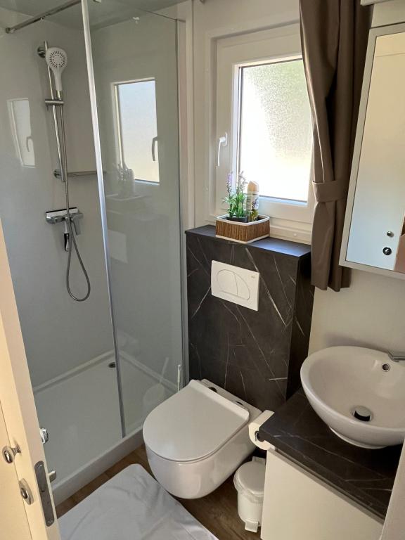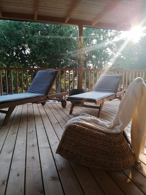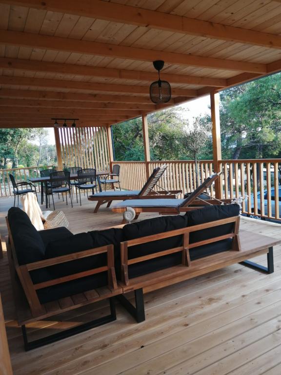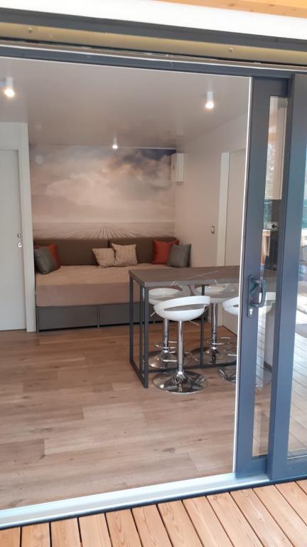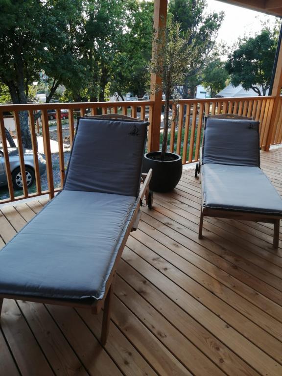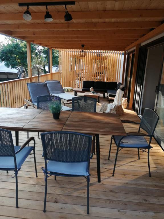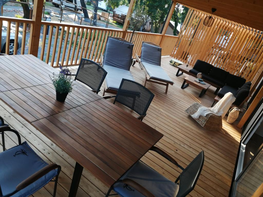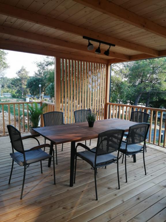 Fancy something different? Do you want to relax in the surroundings of nature and peace? Somewhere between the sky and the sea, there is our new mobile home. More precisely, it is located at the Elements camp in a quiet part of Selc and is ideal for everyone's vacation. On a spacious plot in the immediate vicinity of the sea, 120 meters to be exact! In the silence of untouched nature, we have placed the house so that it looks like a stage to the beautiful sea, sun and the island of Krk. The house is surrounded by nature. Start the day on the terrace with the sound of crickets and the smell of the sea. On 45 m2, there is a dining table and a corner sofa for resting, and two comfortable deckchairs. There is a barbecue at your disposal on the side of the terrace. The interior of the house offers everything, so you will not lack comfort and relaxation in the Mediterranean style. Two bedrooms, bathrooms, fully equipped kitchen, air conditioning, Internet, TV. Ideal for up to 6 people! Close your eyes and imagine... you are in a beautiful place surrounded by the bright waters of the Adriatic. Feast with us and rest your soul and body.