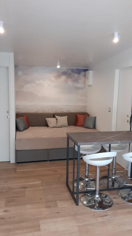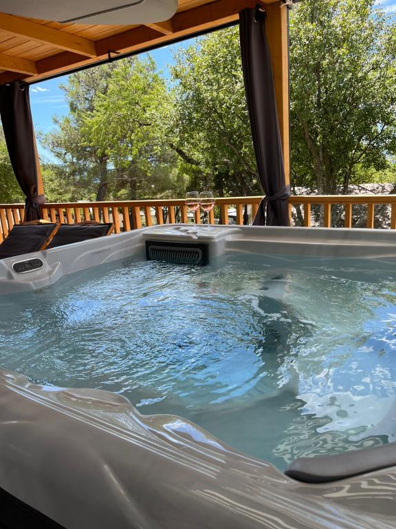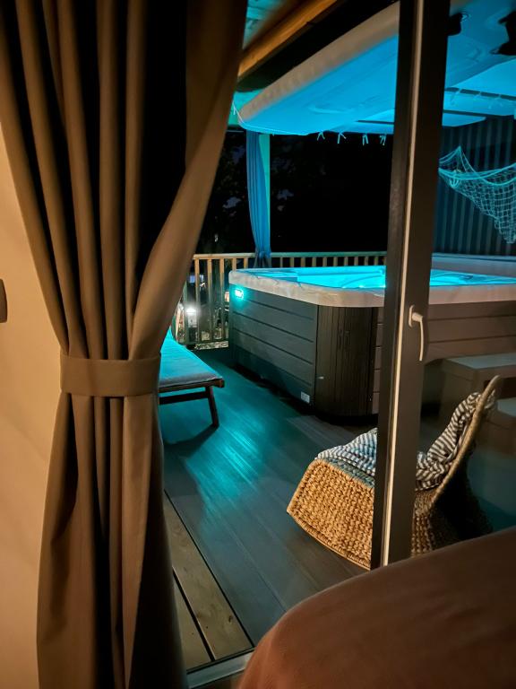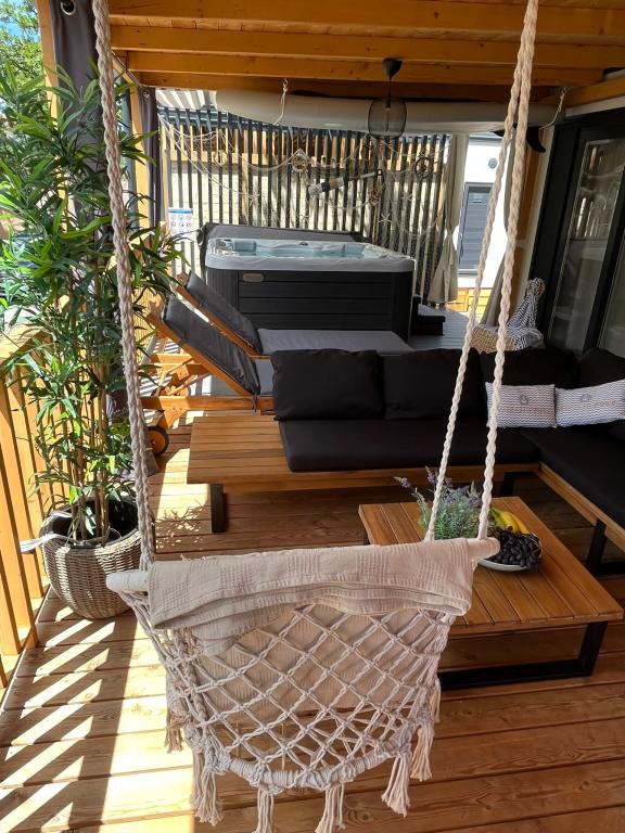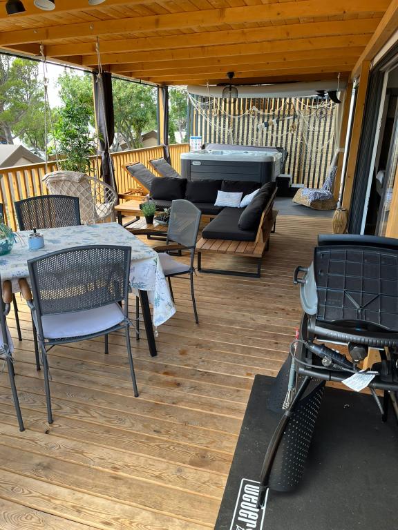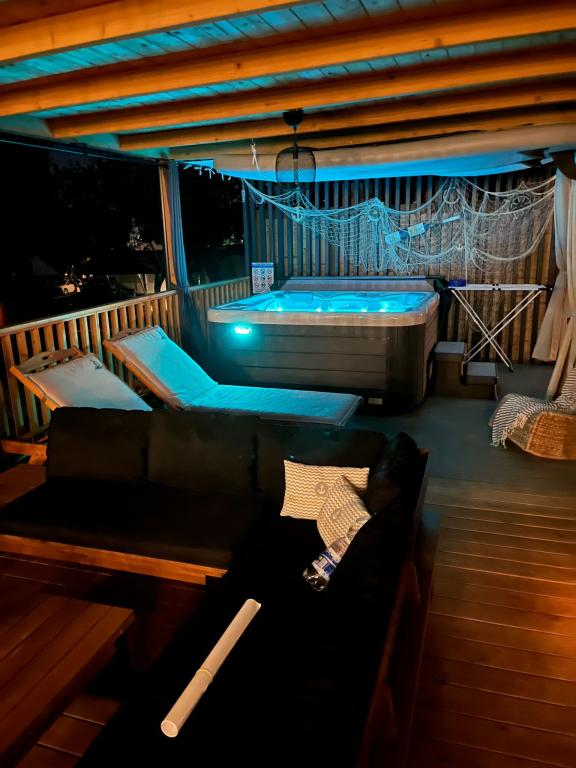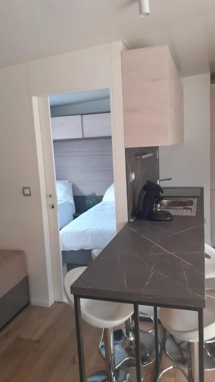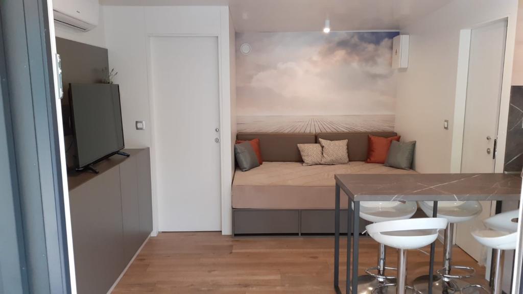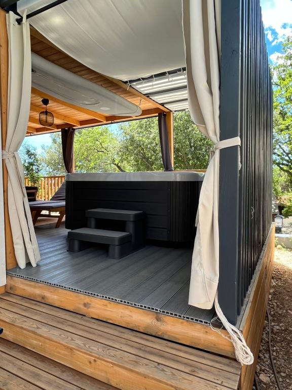 Fancy something different? Do you want to relax in the surroundings of nature and peace? Somewhere between the sky and the sea, there is our new mobile home. More precisely, it is located at the Elements camp in a quiet part of Selc and is ideal for everyone's vacation. On a spacious plot in the immediate vicinity of the sea, 120 meters to be exact! In the silence of untouched nature, we have placed the house so that it looks like a stage to the beautiful sea, sun and the island of Krk. The house is surrounded by nature. Start the day on the terrace with the sound of crickets and the smell of the sea. On 45 m2, there is a dining table and a corner sofa for resting, and two comfortable deckchairs. There is a barbecue at your disposal on the side of the terrace. The interior of the house offers everything, so you will not lack comfort and relaxation in the Mediterranean style. Two bedrooms, bathrooms, fully equipped kitchen, air conditioning, Internet, TV. Ideal for up to 6 people! Close your eyes and imagine... you are in a beautiful place surrounded by the bright waters of the Adriatic. Feast with us and rest your soul and body.
