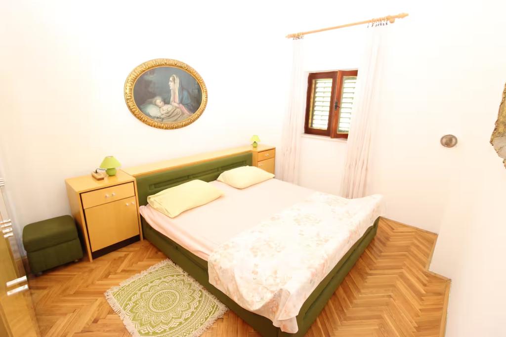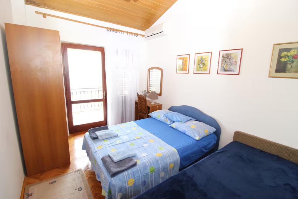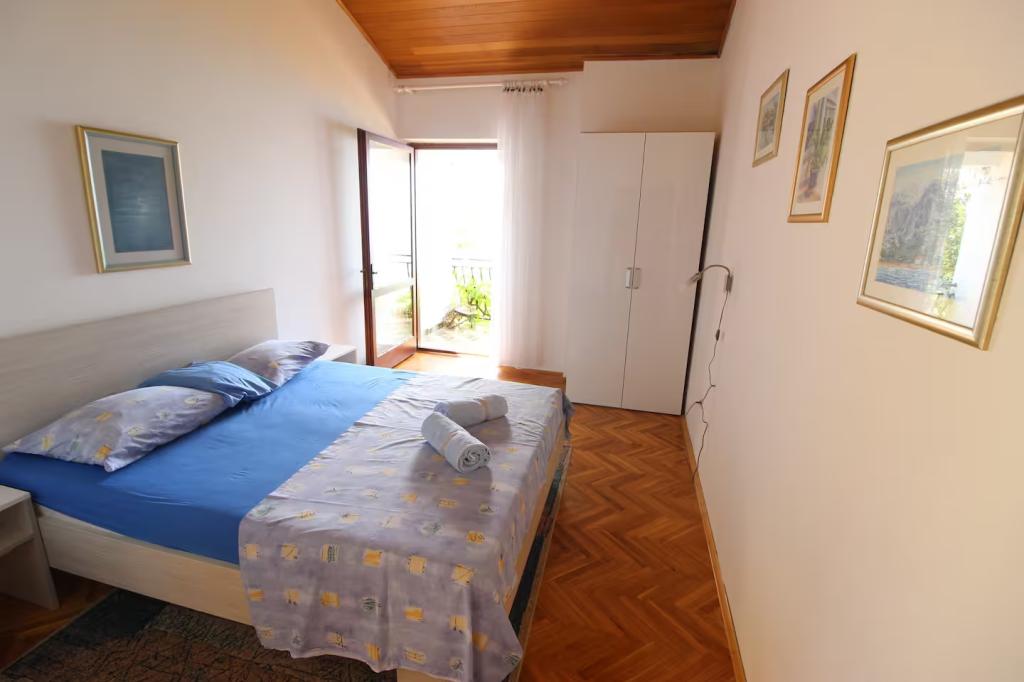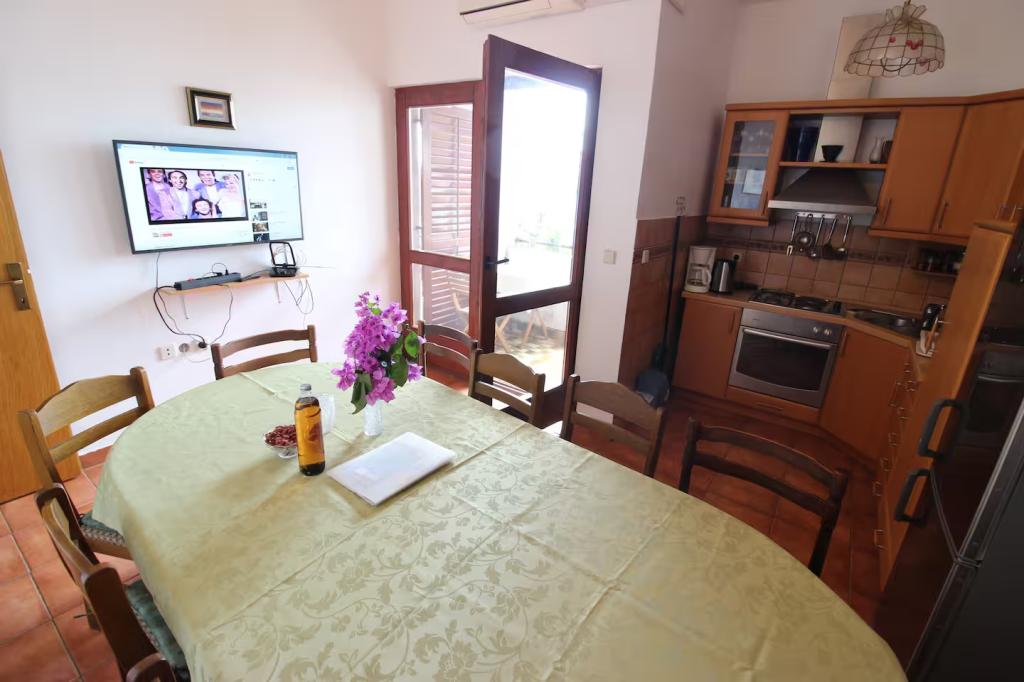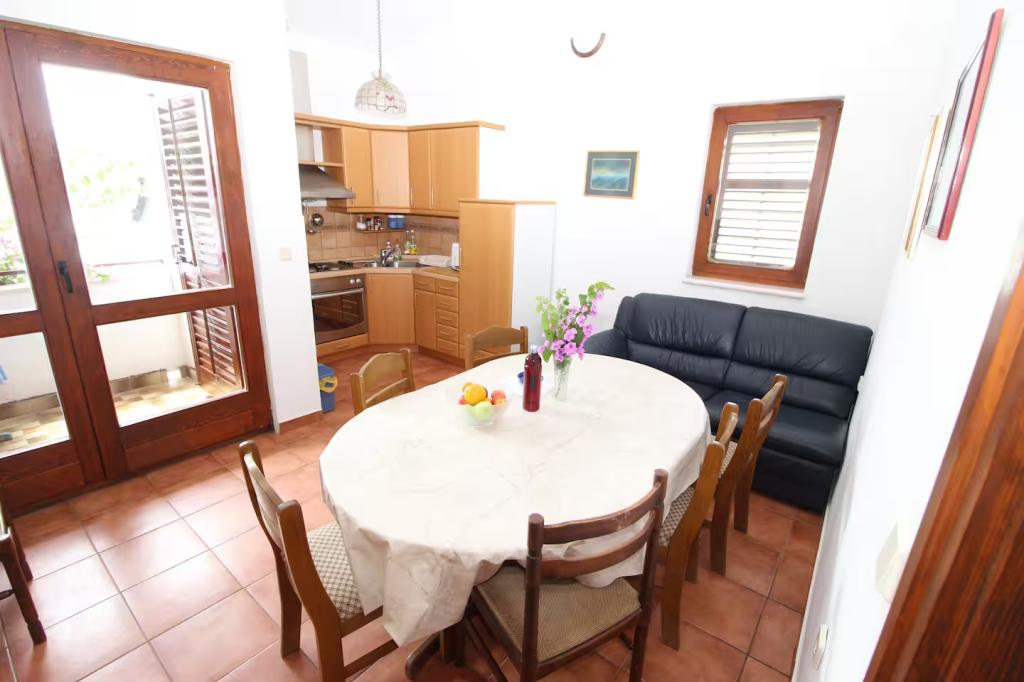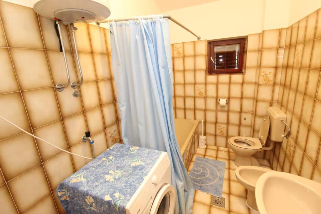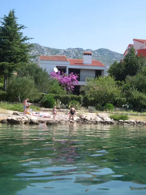 Apartment Stipe is located on the entire upper floor of the house, which is located directly on the sea. The apartment is 130 m2 and consists of an equipped kitchen with a dining room with a small balcony and a sea view, a total of 4 bedrooms, two of which have access to a balcony and a sea view, and two other bedrooms without a balcony and without a sea view, 2 bathrooms with a toilet, one with a bathtub and the other with a shower. Guests also have access to a garden of about 400 m2, which they use together with the owner, an open covered barbecue with a table and benches and sun loungers. The apartment is ideal for families with children who can play without worries in the large fenced garden from which they have direct access to the beach, or for hiking friends because the house is only 2 km away from the Paklenica National Park. Only 40 km away from the Stipe apartment is the city of Zadar, which is known for its numerous attractions and museums and the thousand-year history of its old town.