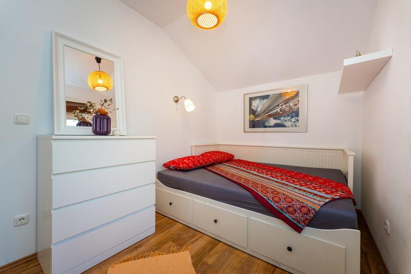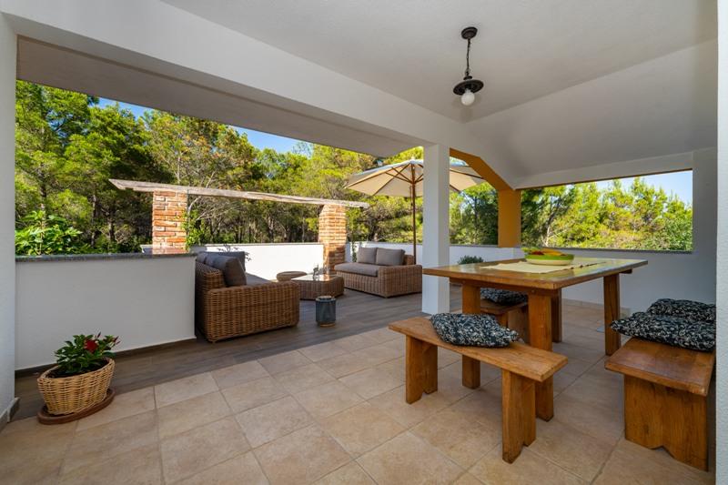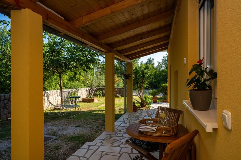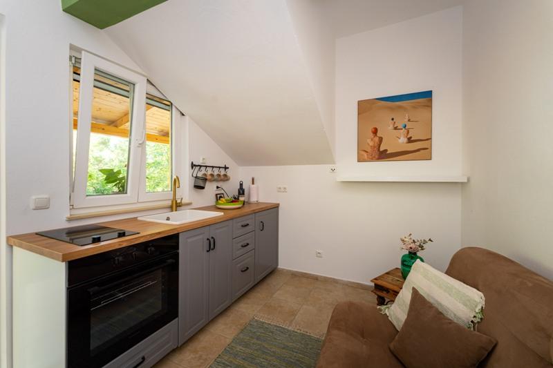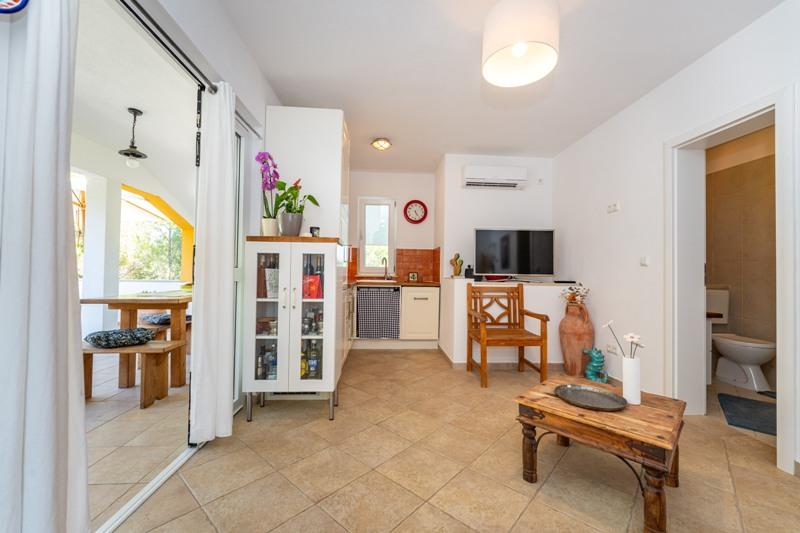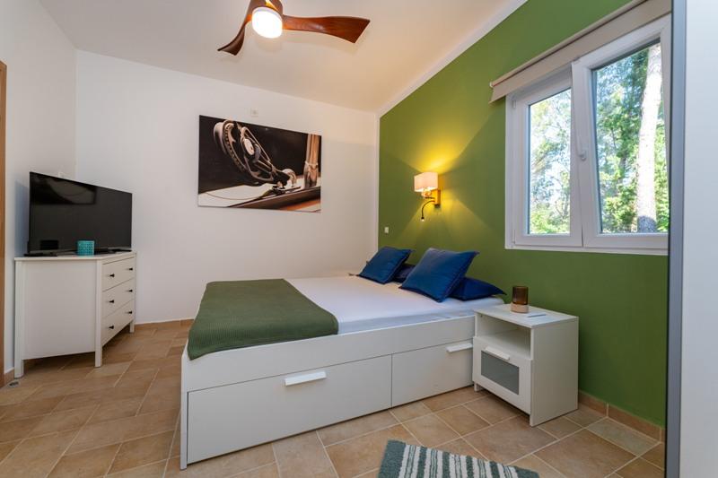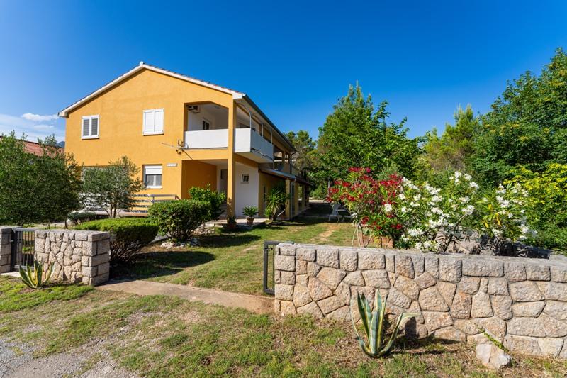 The facility is located in a quiet location, next to a pine forest and not far from the center of Selin (250 m). An ideal choice for a quiet family holiday or a holiday for couples away from the everyday noise and crowds. In front of the house there is a beautifully landscaped garden where guests can have a barbecue or relax on deckchairs in the shade of pine trees. There are 2 apartments in the building - 1 apartment for 4 people (2 bedrooms) and 1 apartment for 2 people. They are equipped with all facilities necessary for a pleasant and relaxed vacation. Each apartment has satellite TV, air conditioning and Wi-Fi. A garden shower is also available.