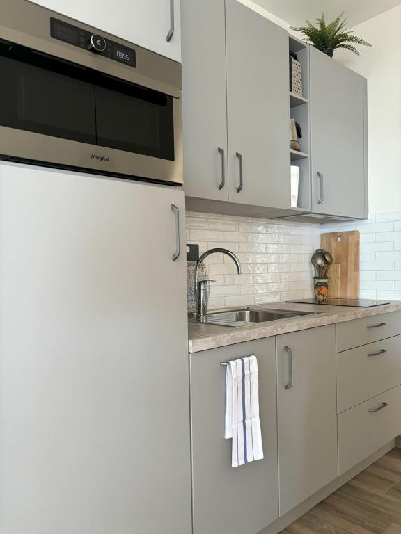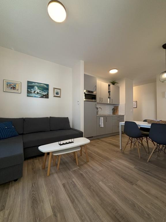 The location was wonderful, view of the sea straight away from the balcony and the coast is really 2 meters away. The apartment was super clean, we had everything we wanted, everything is well maintained. There was also a cot with cute bed linen and a towel with fairy tale characters for our daughter. Child seat for the toilet was also available. Kitchen is fully equipped, nothing is missing. The hosts were fantastic, helpful and very kind. They recommended places to visit, places to eat, and things to do. Parking space immediately received in the garden. WLAN also included. Playground nearby.