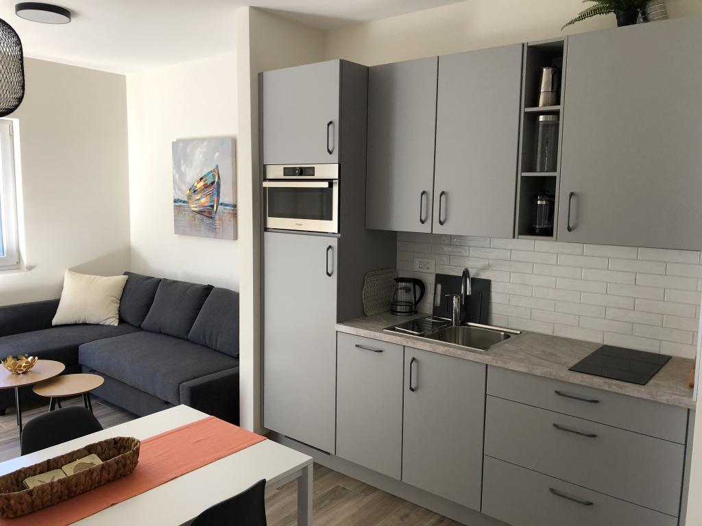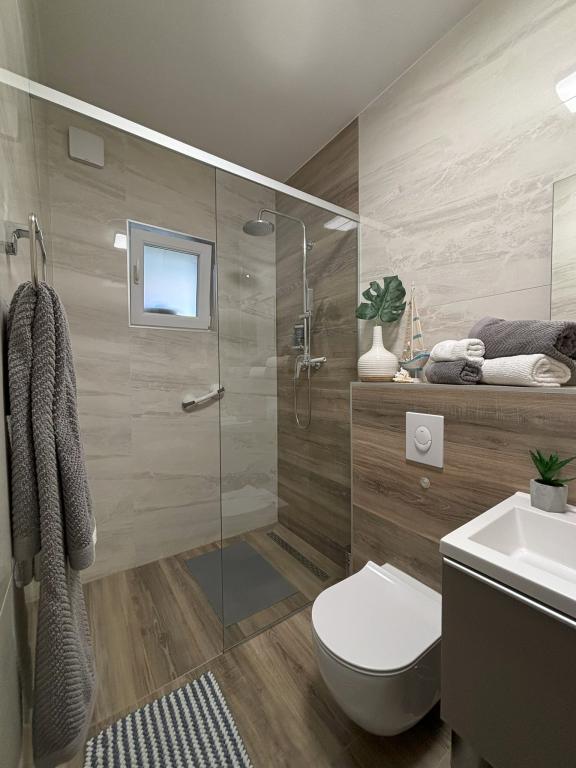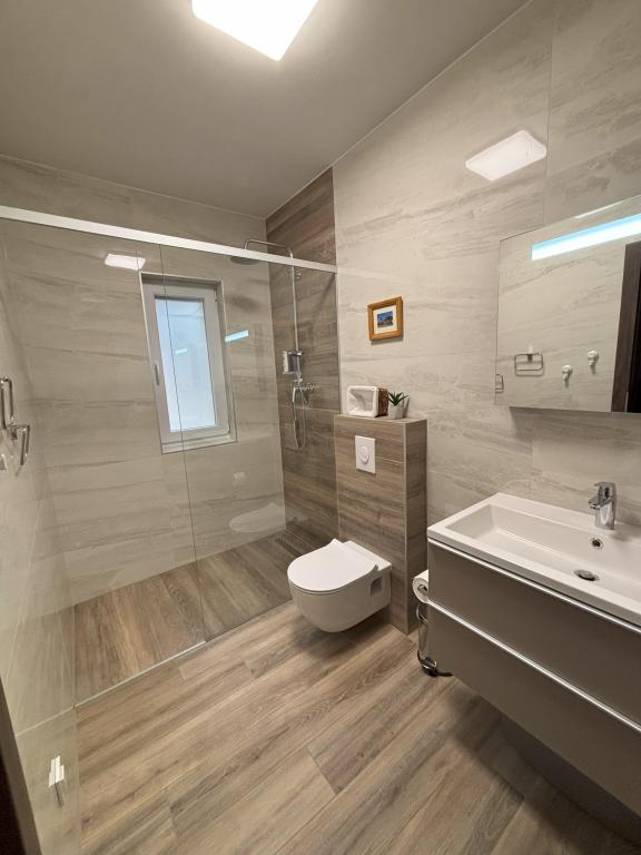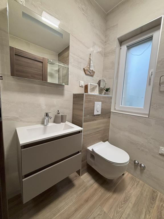 New luxury apartments next to a beautiful pebble beach in the quiet town of Seline. Apartments Villa Mila offer air-conditioned accommodation units with free wireless Internet access, flat screen Smart TV with satellite programs in 6 languages, and a fully equipped kitchen. The bathrooms are equipped with spacious walk-in shower cabins for the most comfortable stay of the guests. All apartments have a separate entrance and a private furnished terrace with a view of the sea and unforgettable sunsets. Each apartment has a secured parking space inside the fenced yard. Paklenica National Park is located in the immediate vicinity. The public bus stop with lines to nearby cities is 100 m away. Zadar airport is less than 40 km away.