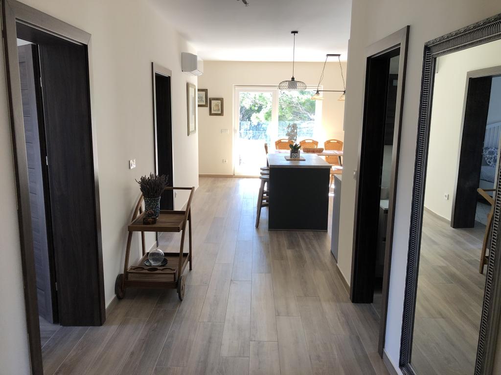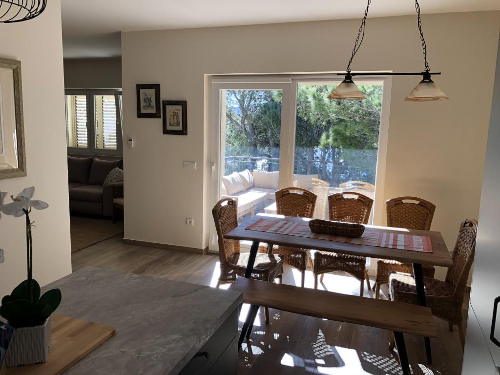 Beautiful new villa with apartments directly by the sea - there is literally access to the sea from the terrace of the apartment. Modern apartment with all the necessary equipment, free fenced parking, outdoor shower, hammocks between the mighty pine trees on the property, free wifi and more. What should be highlighted are the friendly owners of the villa, who make you feel at right home. Recommended for both individuals and families with children!