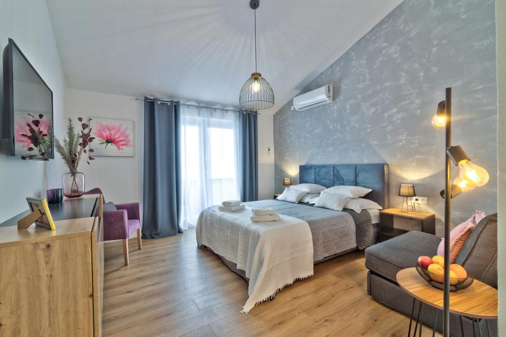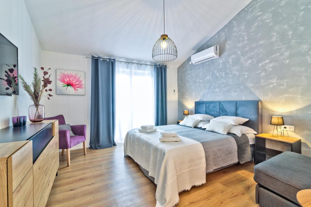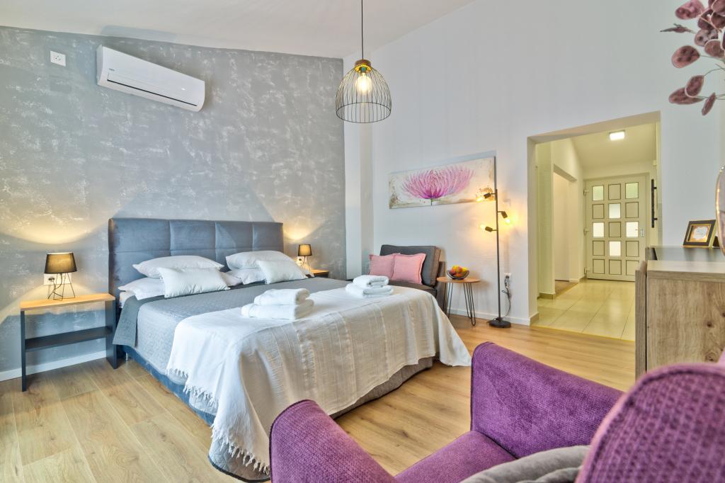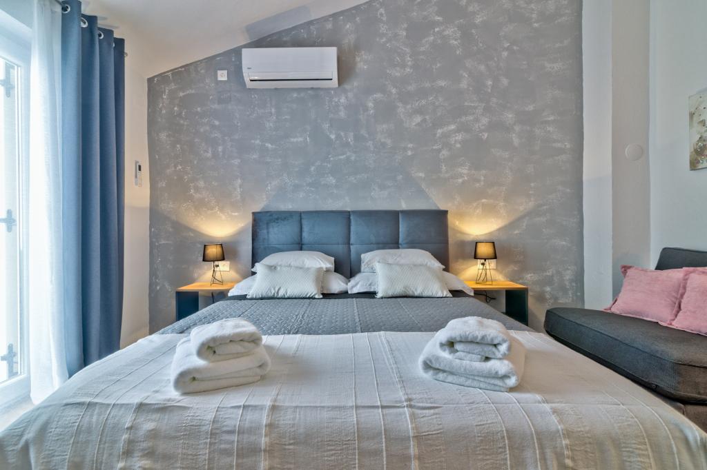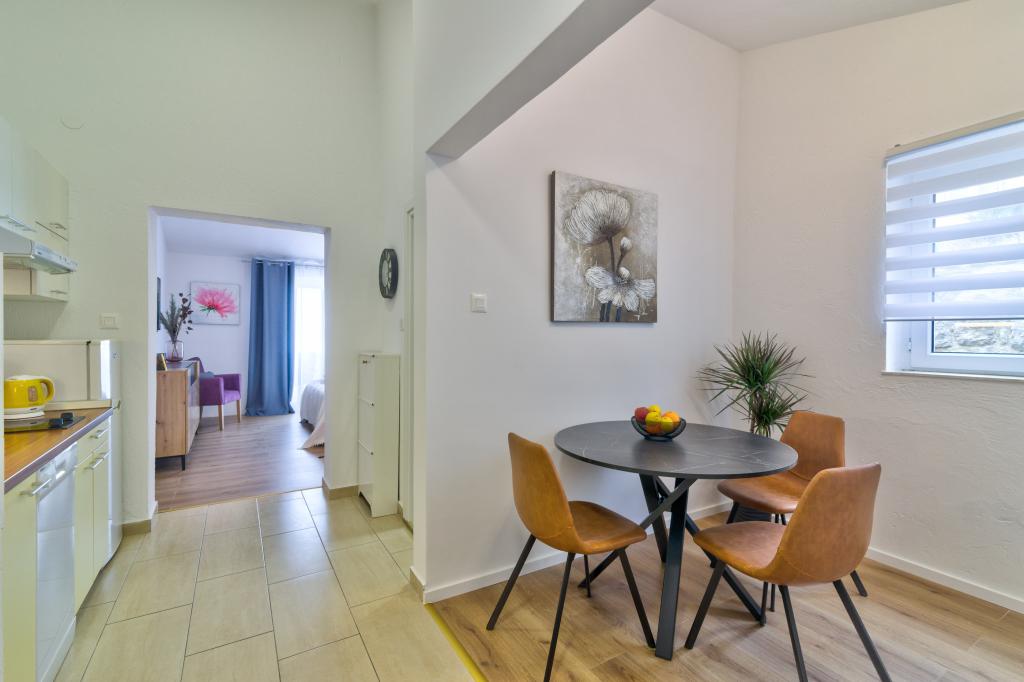 We are pleased to present to you "Bobinac" apartments, comfortable air-conditioned apartments located on the second floor and the ground floor of a private house, built literally 50 yards from the sea and 300 meters from the city center. Bobinac Apartments are in a quiet place without much traffic and bustle and yet only a few steps than required for a pleasant and relaxing holiday. Apartments Bobinac are a blend of authentic relax, away from the noise, industrial pollution and madness of everyday hectic lives, without giving up all the benefits of today's modern technology. Our facility has a total of 4 apartments. All the kitchens are equipped with a sink, refrigerator, stove and all necessary utensils, and will provide an opportunity for food preparation at home. In addition, depending on which apartment you choose or which is free, with towels for showering, toilet paper, shampoo, washing machine and bathroom cabinet in a bathroom all are also showers. The air-conditioned apartments awaits you and satellite TV receivers, and the supply of wireles internet. On the second floor are three suites, two suites fit four people (2 +2), and one six (2 +4). On the ground floor there is an apartment with a capacity for 8 people (4 +4). Each apartment has a balcony with a
