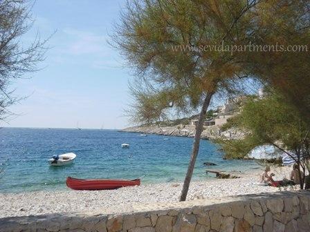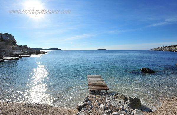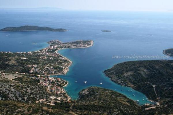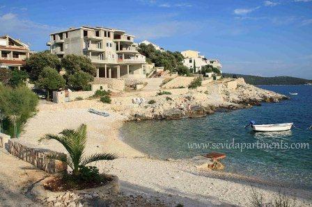 Beach house with two apartments on the seafront, 10 m to the pebbles beach. Two bedroom apartment on the ground floor (4 +1) and one-bedroom apartment (2 +2) on the first floor with a breathtaking view of the sea, beach and islands. Provide a quiet holiday in Sevid - Trogir Riviera, enjoying the beauty of the sunny coves and crystal clear waters, the almost hidden part of the Croatian coast.