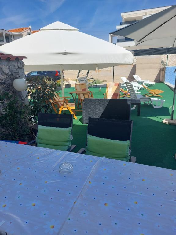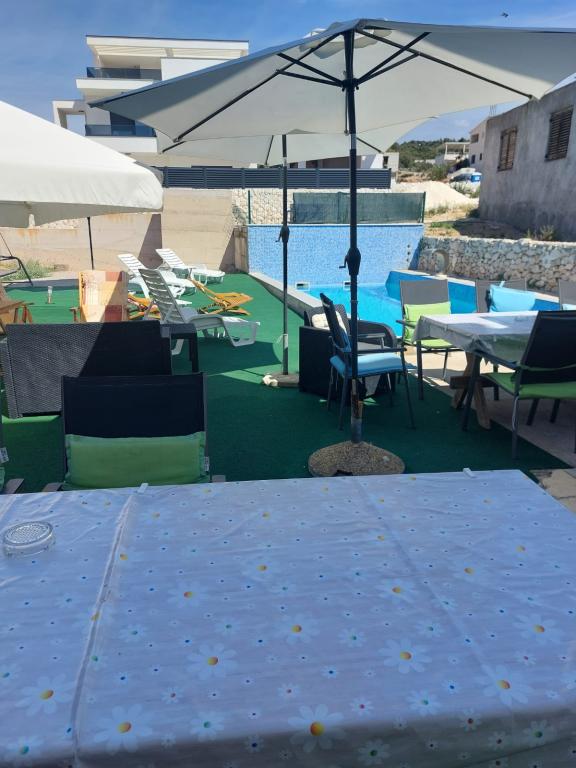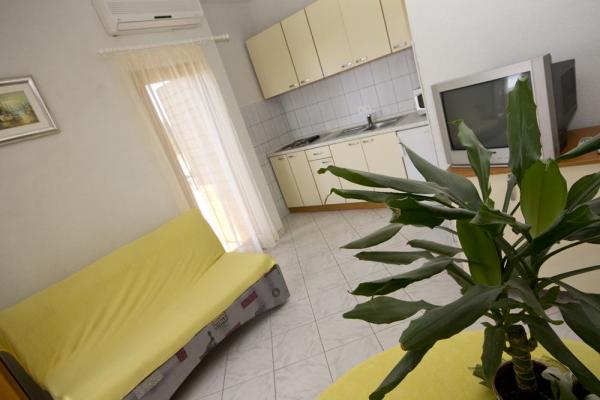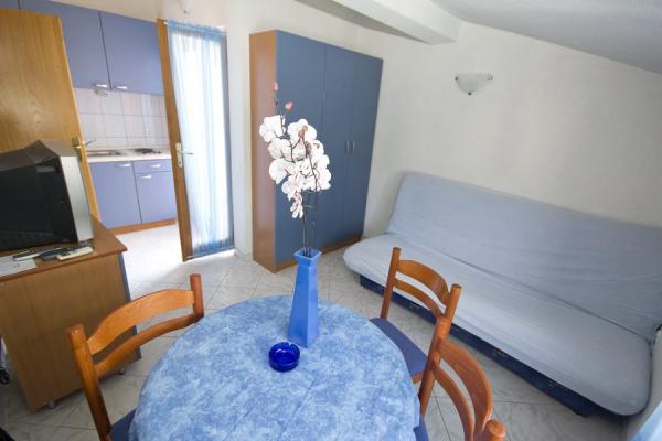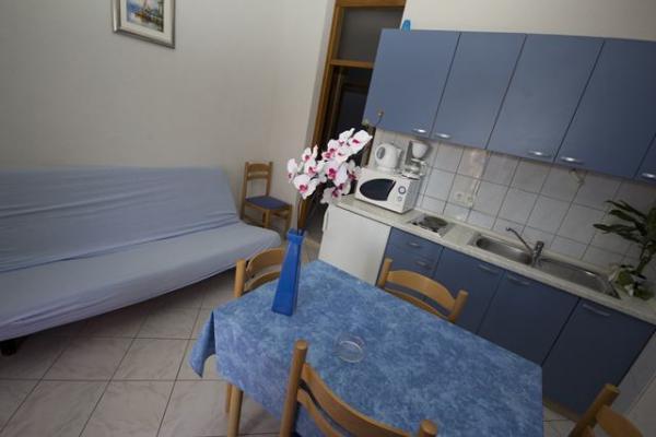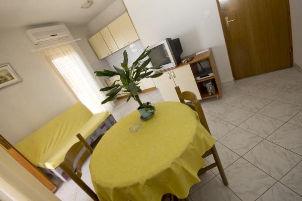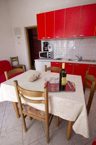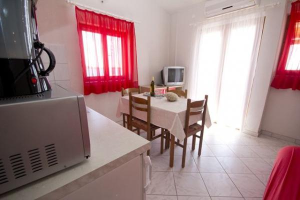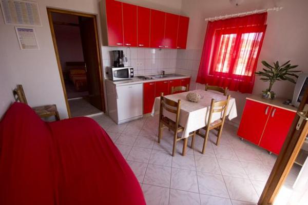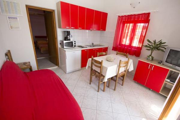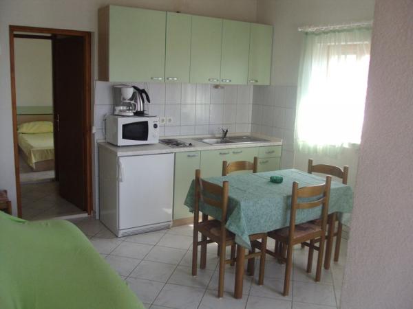 Quiet and quiet neighborhood. Sunbeds, umbrellas, kayaks available on the beach and all this for the price. In the garden a swimming pool and a barbecue area. Parking. A4 rooms spacious with a large balcony (we spent the first week there), A2 + 2 (second week stay) slightly smaller, clean rooms. Owners nice, friendly, helpful. Nice family 2 + 2 (children aged 7 and 11). To the store and bar 2 min. (only shop and bar in the village. To the beach maximum 1 minute. Water in this place very clean. I recommend the Dinko apartment to everyone.