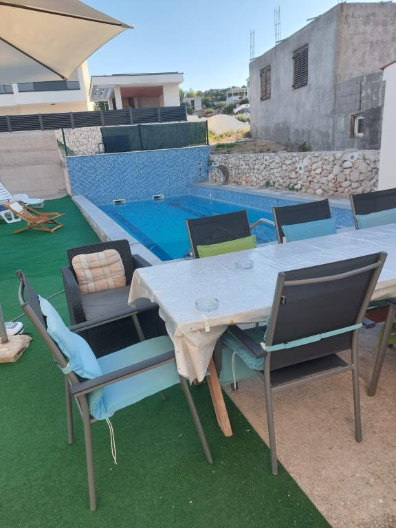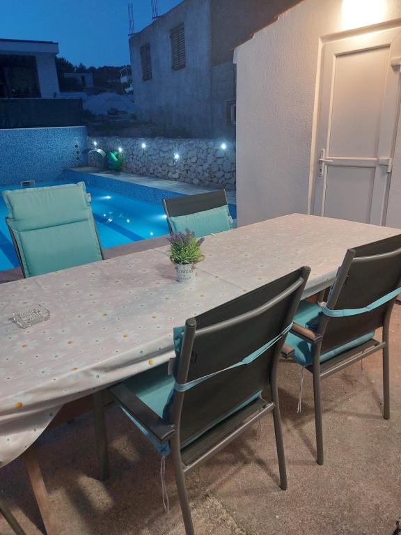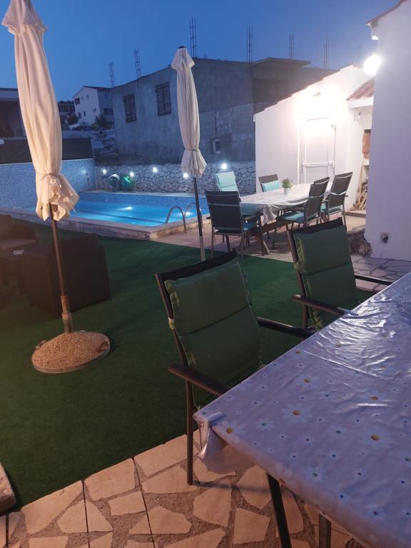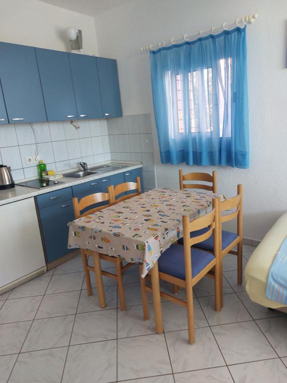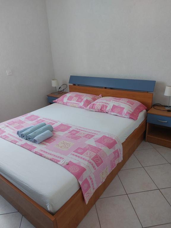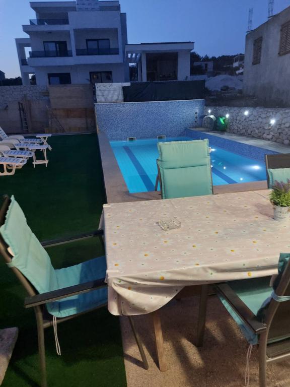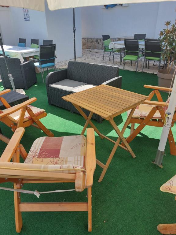 Quiet and quiet neighborhood. Sunbeds, umbrellas, kayaks available on the beach and all this for the price. In the garden a swimming pool and a barbecue area. Parking. A4 rooms spacious with a large balcony (we spent the first week there), A2 + 2 (second week stay) slightly smaller, clean rooms. Owners nice, friendly, helpful. Nice family 2 + 2 (children aged 7 and 11). To the store and bar 2 min. (only shop and bar in the village. To the beach maximum 1 minute. Water in this place very clean. I recommend the Dinko apartment to everyone.