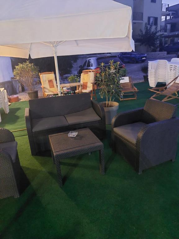 An ideal place for people looking for peace and quiet in a beautiful area at an affordable price. The children are also delighted, the hosts wonderful, helpful and smiling 😊 Apartments clean, swimming pool, close to the sea, sea view, deckchairs, kayaks, umbrellas in the price. There is everything you need to rest. The host helped us with grapes, the host prepared us a delicious grilled fish. I would recommend ..