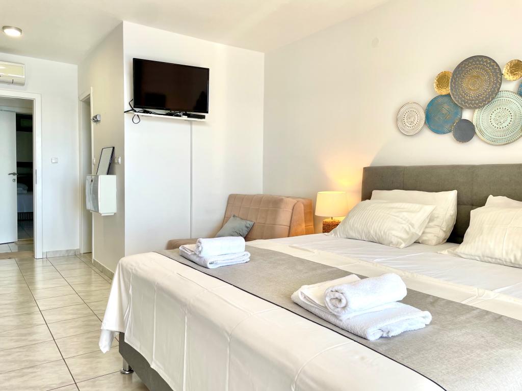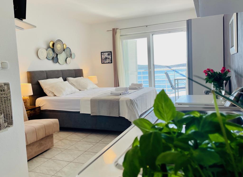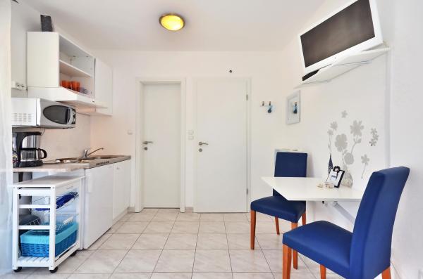 Fantastic view from the balcony, the sea is about 100m away. Crystal clear water, especially in the morning. The apartment is more than good for the price, everything you need is there. And if something is missing, the owner Ivana will get it straight away. In our apartment the refrigerator was a bit small, the freezer compartment is tiny. Still a full 5 stars, we like the rest very much.