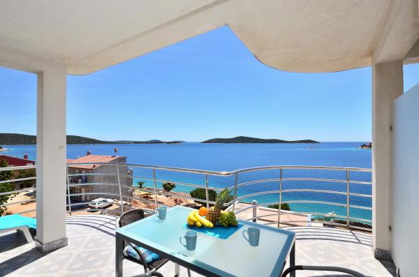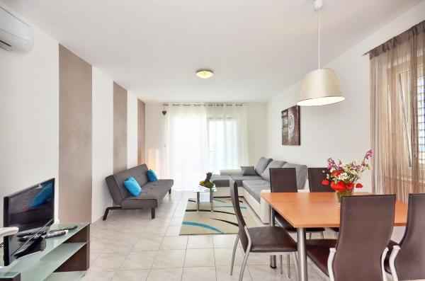 The perfect place to relax. Apartment identical to the pictures. Provided for the friendly owners who are always available to help. I would recommend this property alone as both a person and families. The view from the terrace is a lovely, you can enjoy beautiful views of the sea and on Sevid.