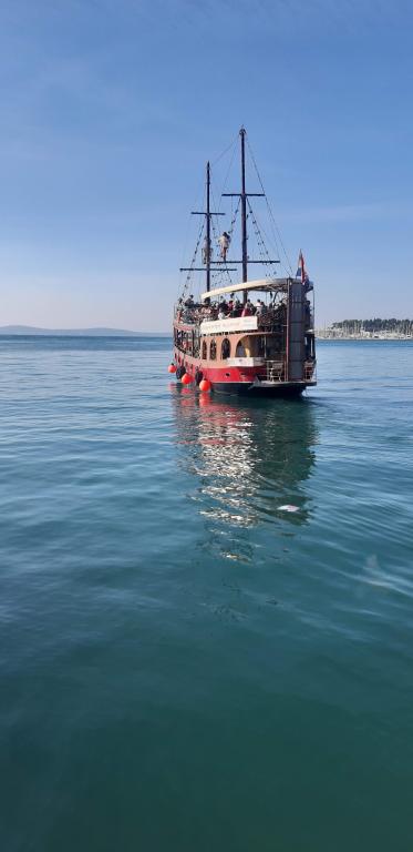 We spent almost two weeks with friends at Villa Neda 6+2. Everything was fantastic. The hosts were very friendly, they welcomed us warmly, and even prepared dinner for us. The apartment was spacious; everyone had their own bedroom and two bathrooms, which was great considering the number of people staying. It was nice and clean, and most importantly, close to the sea. The area was quiet, perfect for relaxation and evening walks, without the crowds and noise of larger cities. There's a shop and a bar by the beach, a small grocery store, and souvenirs. For me, it was perfect. I highly recommend it.