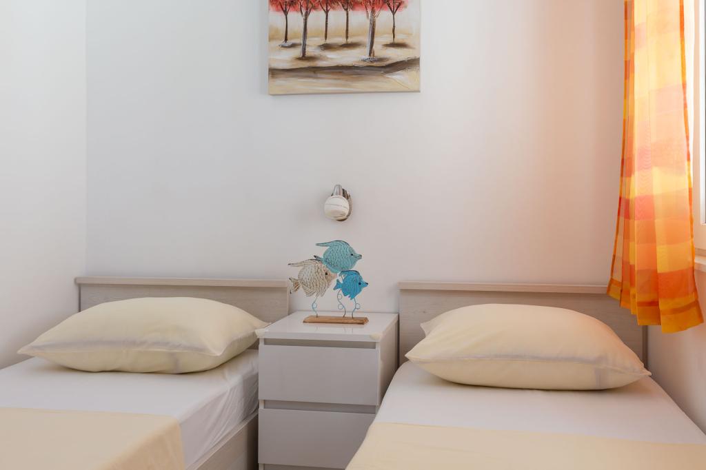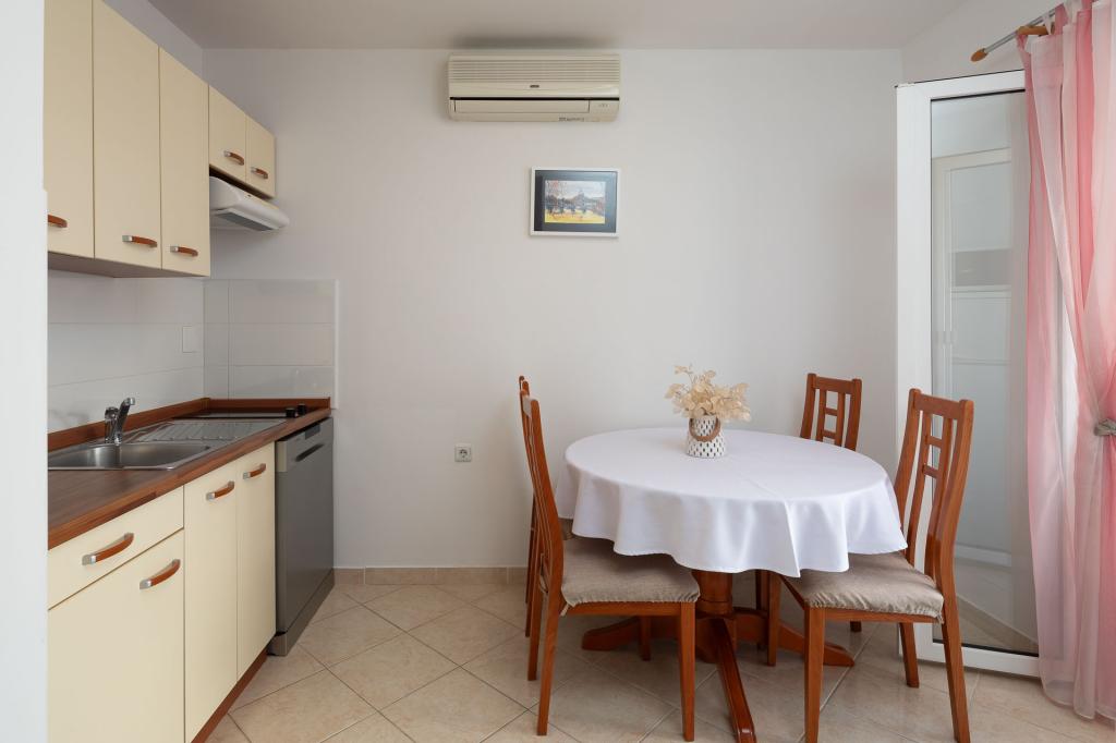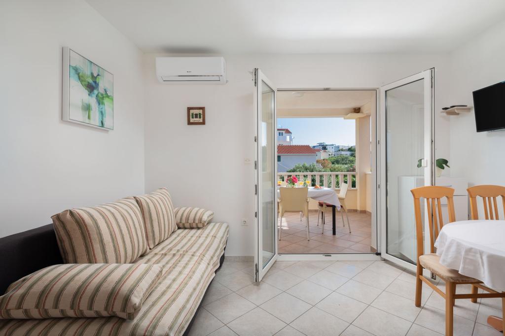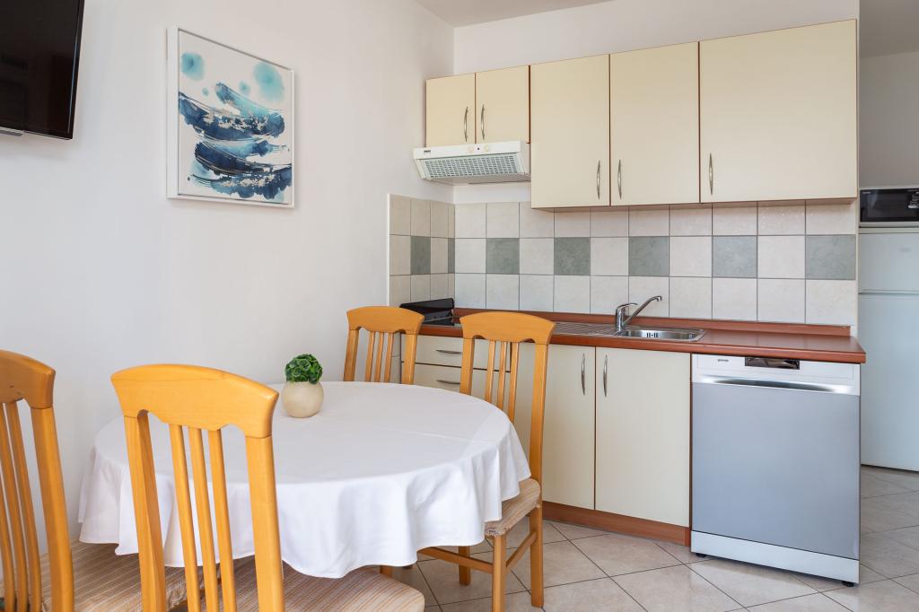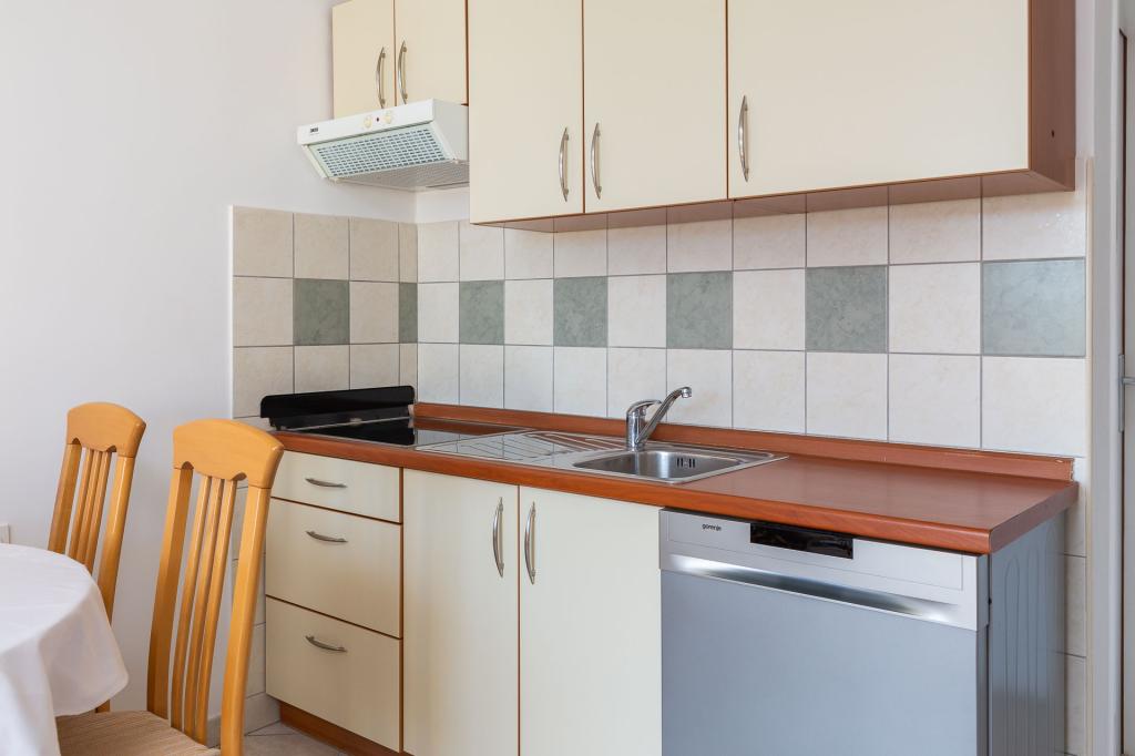 Accommodation excellent, very clean apartments, home OK, the beach and the sea without errors. The sheer tranquility, no tourists, only people staying in the apartments. Quiet at night. Beautiful surroundings. Shops missing, who wants to buy, you can go to the city. This place i highly recommend apartment. Our family was very happy for this thanks. :-):-):-)