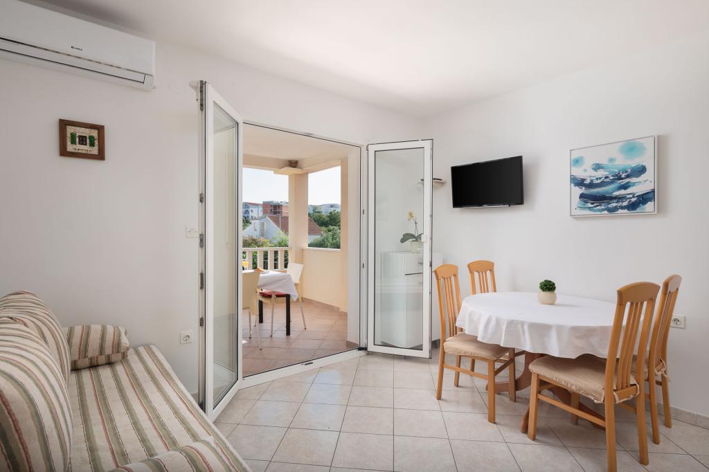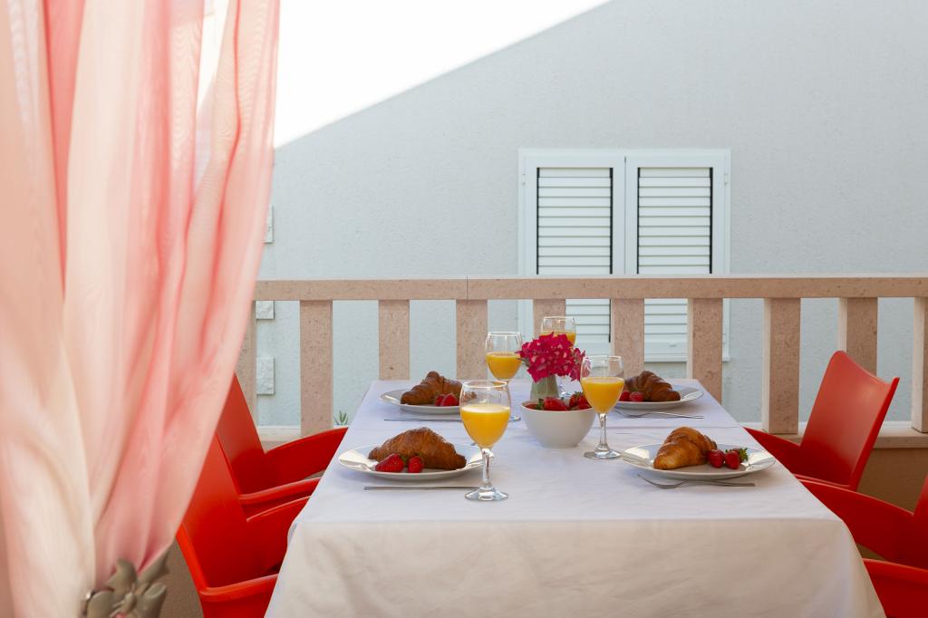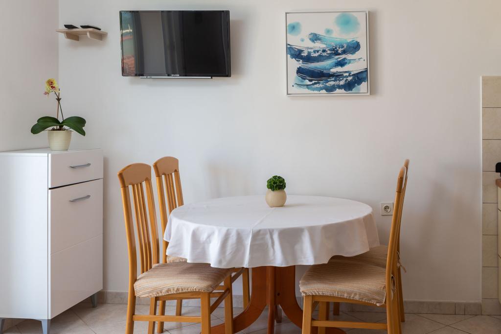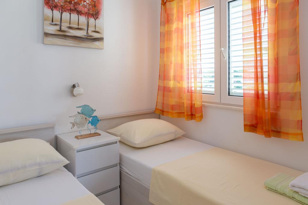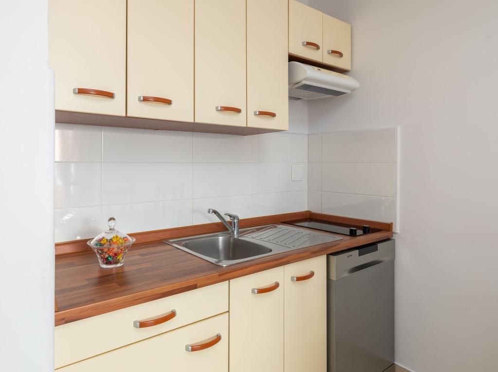 Accommodation excellent, very clean apartments, home OK, the beach and the sea without errors. The sheer tranquility, no tourists, only people staying in the apartments. Quiet at night. Beautiful surroundings. Shops missing, who wants to buy, you can go to the city. This place i highly recommend apartment. Our family was very happy for this thanks. :-):-):-)