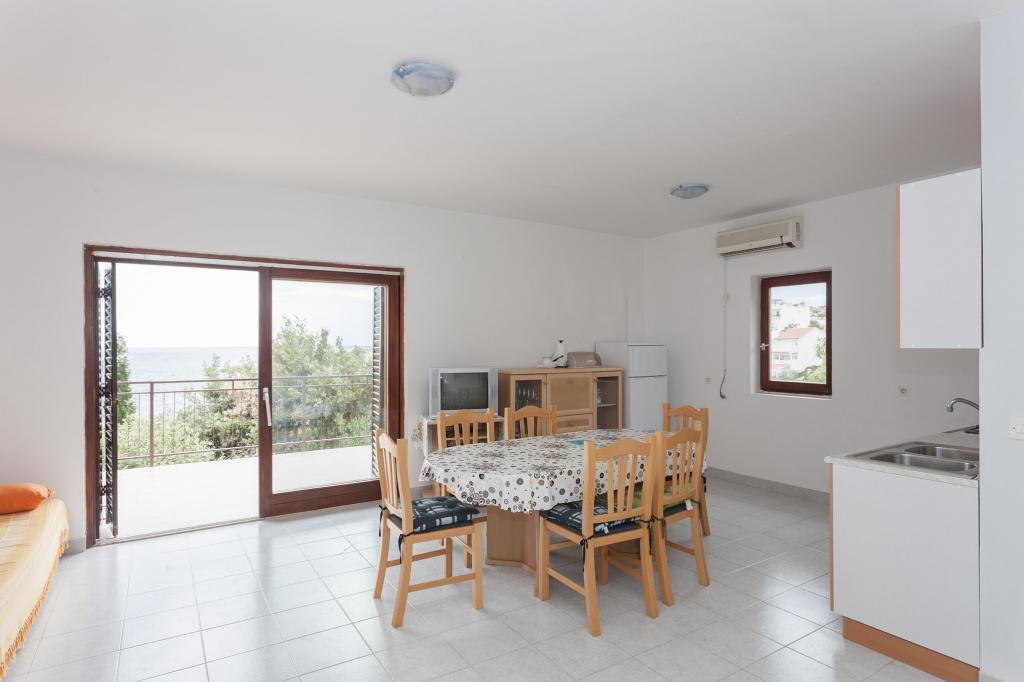 Great accommodation. A huge living room and large terrace. A beautiful view of the sea. Great for families, rocky beach and concrete beach below the house. Quiet, relaxation. Isolated peninsula, has no traffic.