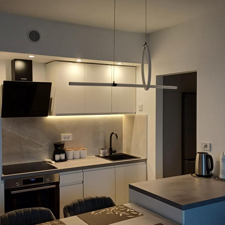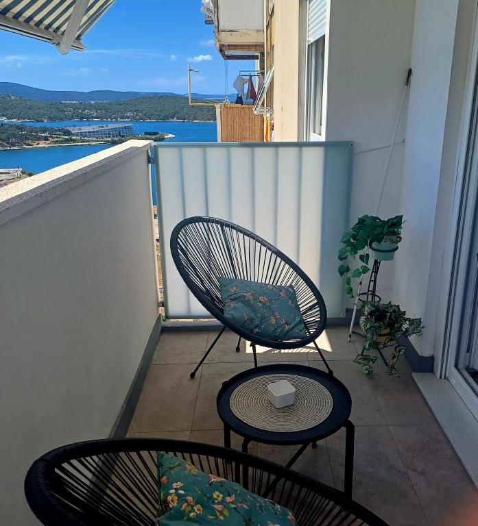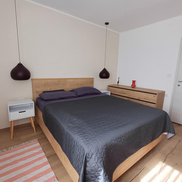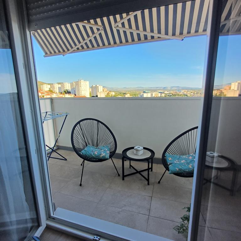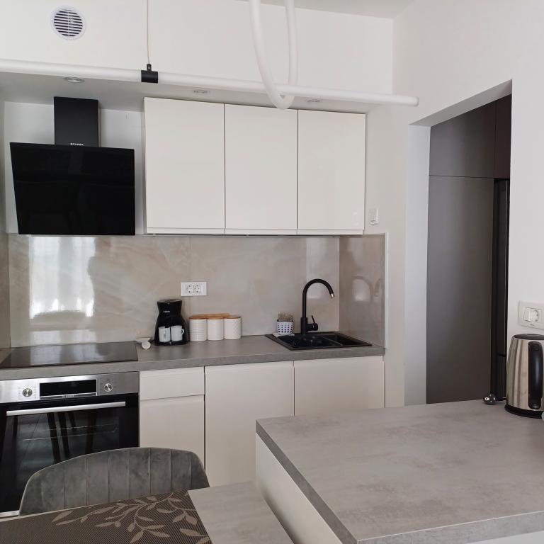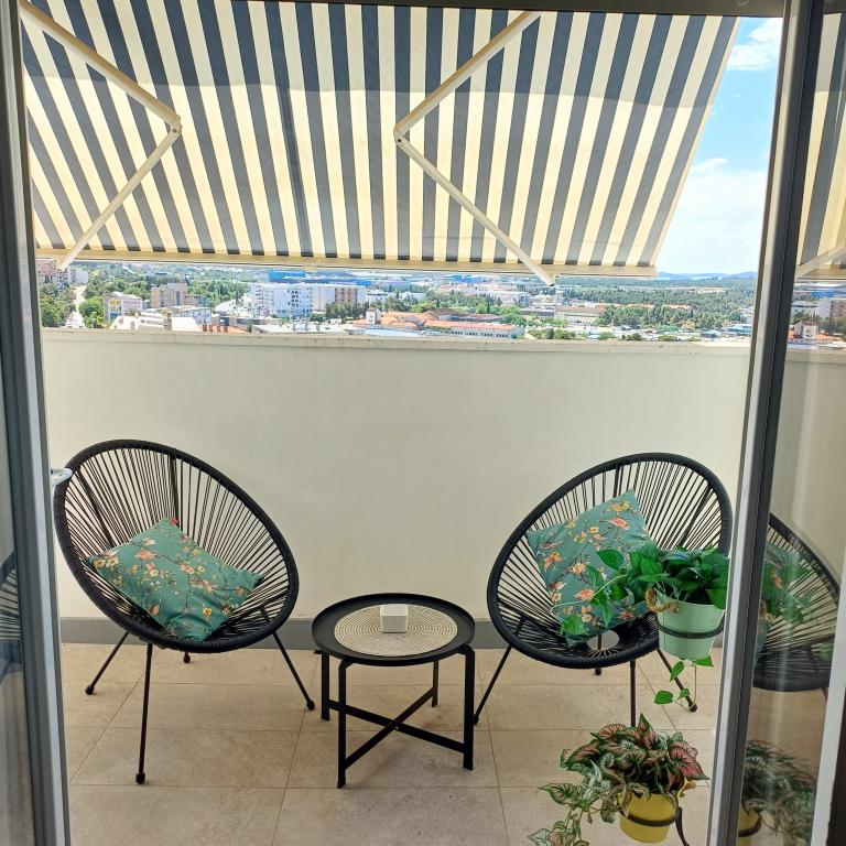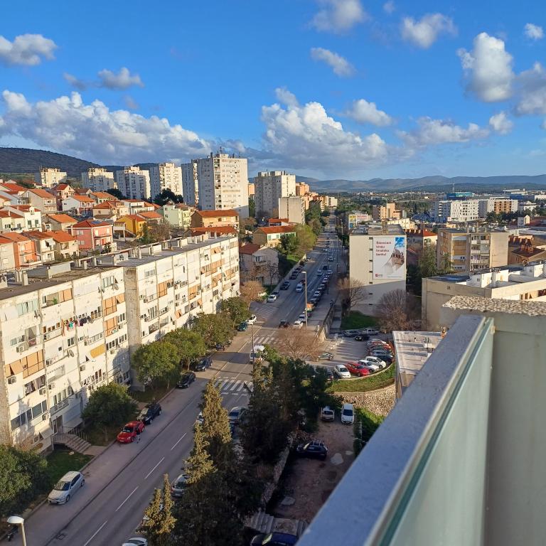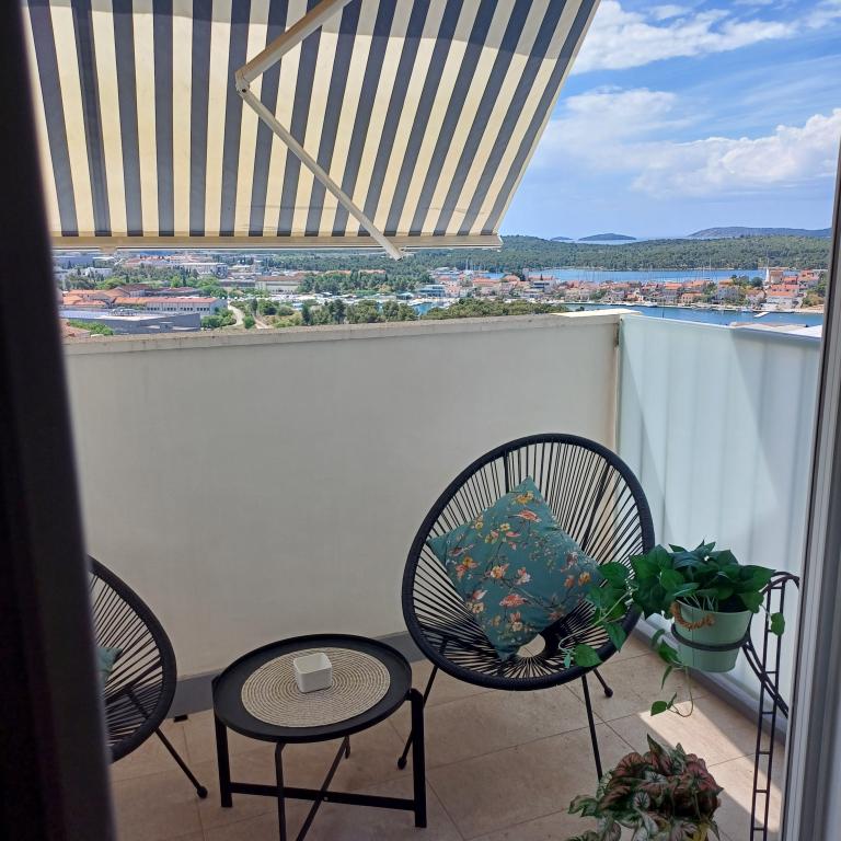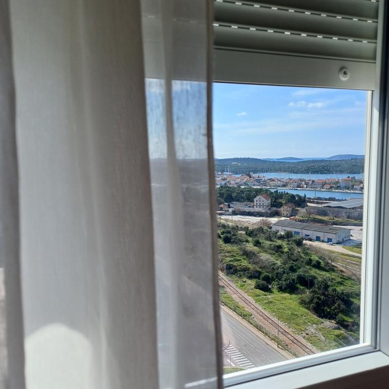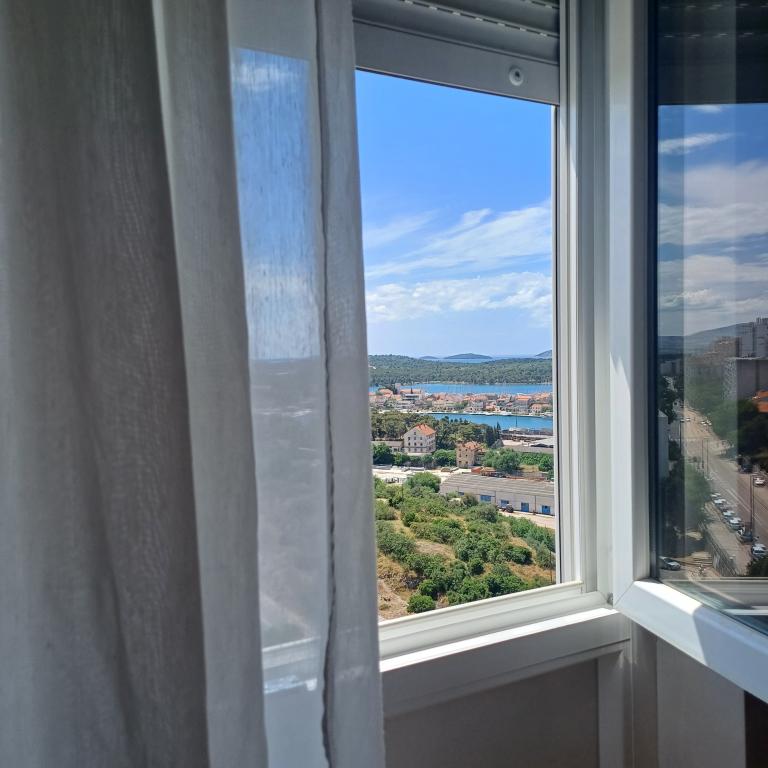 The luxury apartment is located on the 10th floor of a residential building in Šibenik, in an excellent location, 20 minutes' walk from the old city center and the city beach Banj. Luxury accommodation with a balcony offering a beautiful view of the sea and the city offers guests a pleasant and relaxing stay. The apartment consists of a spacious bedroom, hallway, bathroom with walk-in shower, hair dryer and washing machine. The living room and dining room are in a space with a modern kitchen equipped for a short or long stay and contains dishes, kitchen utensils, a stove, an oven, a dishwasher, a refrigerator, a kettle and a coffee machine. The apartment is air-conditioned, and guests have access to TV and free Wi-Fi. Public parking is located in front of the building itself. As soon as you leave the building and cross the street, at a distance of 30 m there is a grocery store, a pharmacy and a coffee bar, and a bank, post office, pizzeria, gym, hair salon, shopping center, bus station, boat dock are at a distance of 500 m. - 700 m.