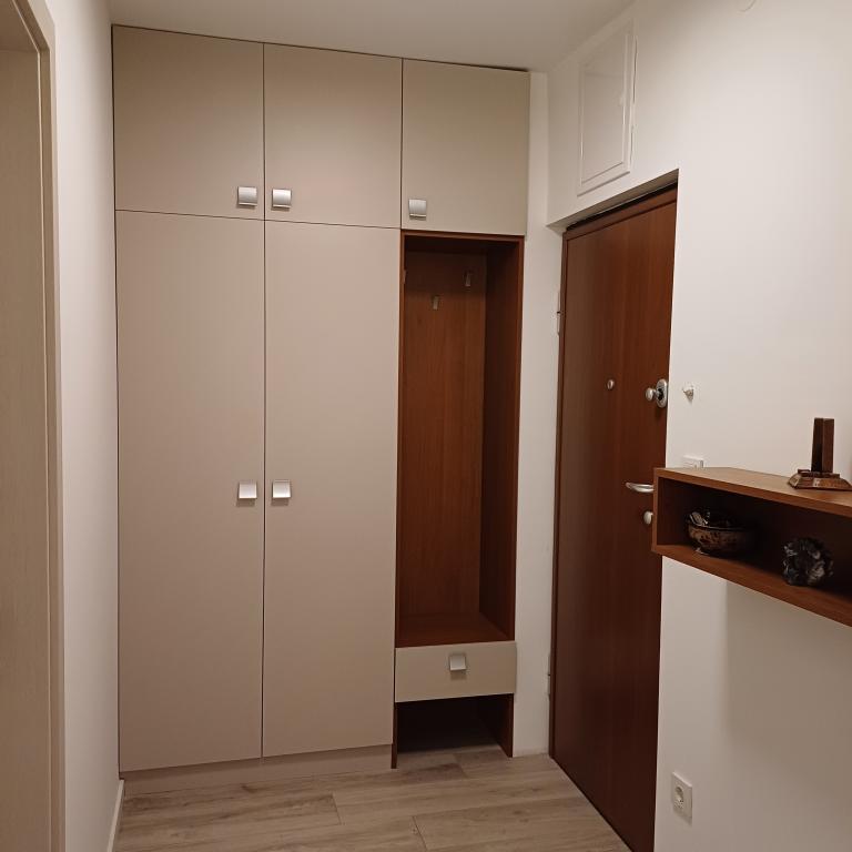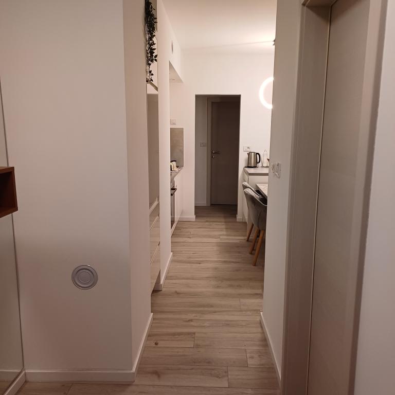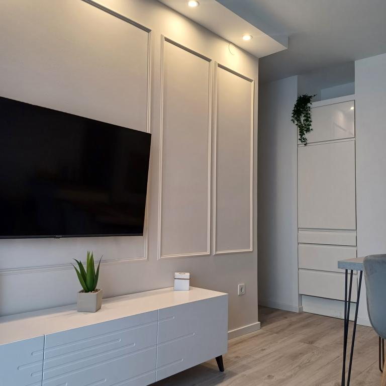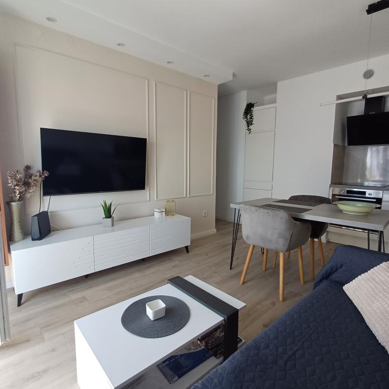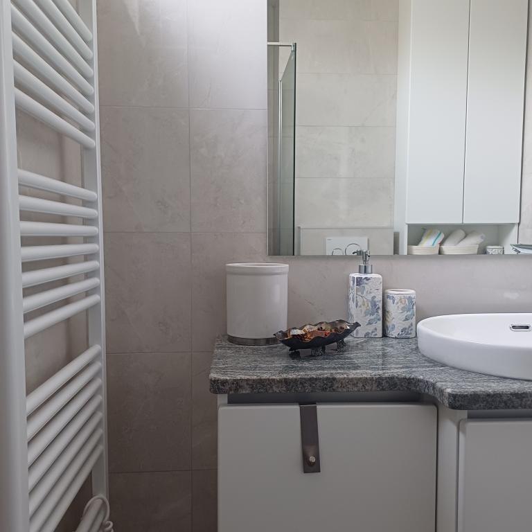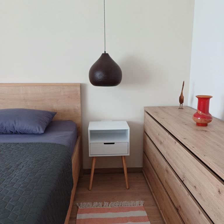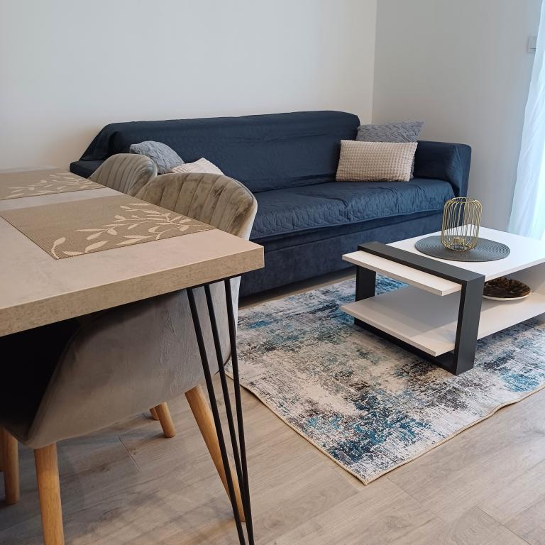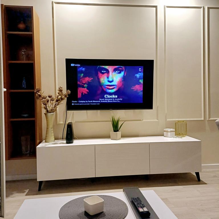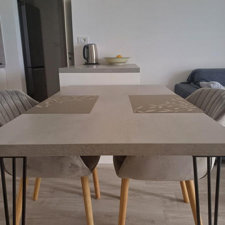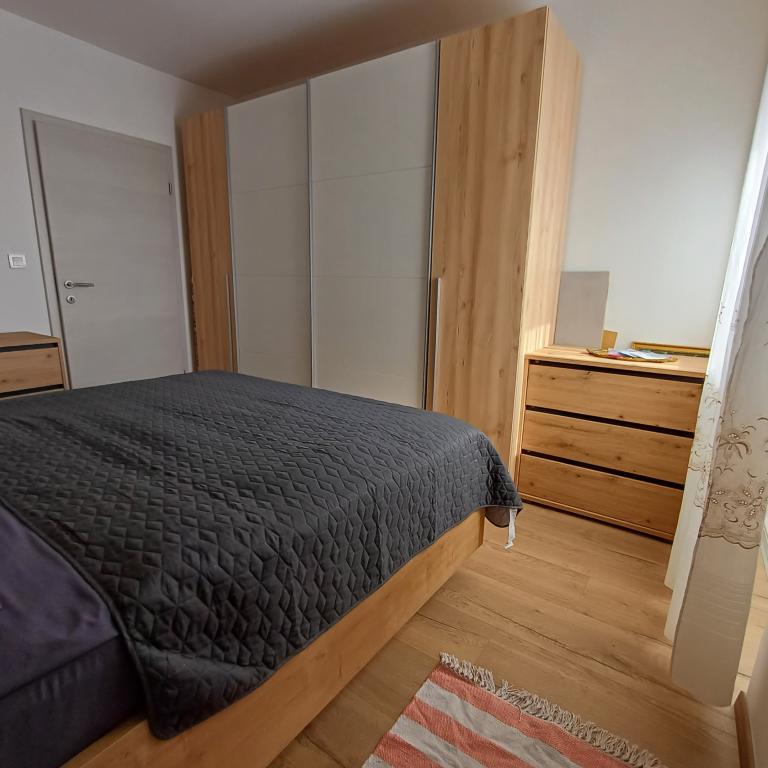 The luxury apartment is located on the 10th floor of a residential building in Šibenik, in an excellent location, 20 minutes' walk from the old city center and the city beach Banj. Luxury accommodation with a balcony offering a beautiful view of the sea and the city offers guests a pleasant and relaxing stay. The apartment consists of a spacious bedroom, hallway, bathroom with walk-in shower, hair dryer and washing machine. The living room and dining room are in a space with a modern kitchen equipped for a short or long stay and contains dishes, kitchen utensils, a stove, an oven, a dishwasher, a refrigerator, a kettle and a coffee machine. The apartment is air-conditioned, and guests have access to TV and free Wi-Fi. Public parking is located in front of the building itself. As soon as you leave the building and cross the street, at a distance of 30 m there is a grocery store, a pharmacy and a coffee bar, and a bank, post office, pizzeria, gym, hair salon, shopping center, bus station, boat dock are at a distance of 500 m. - 700 m.