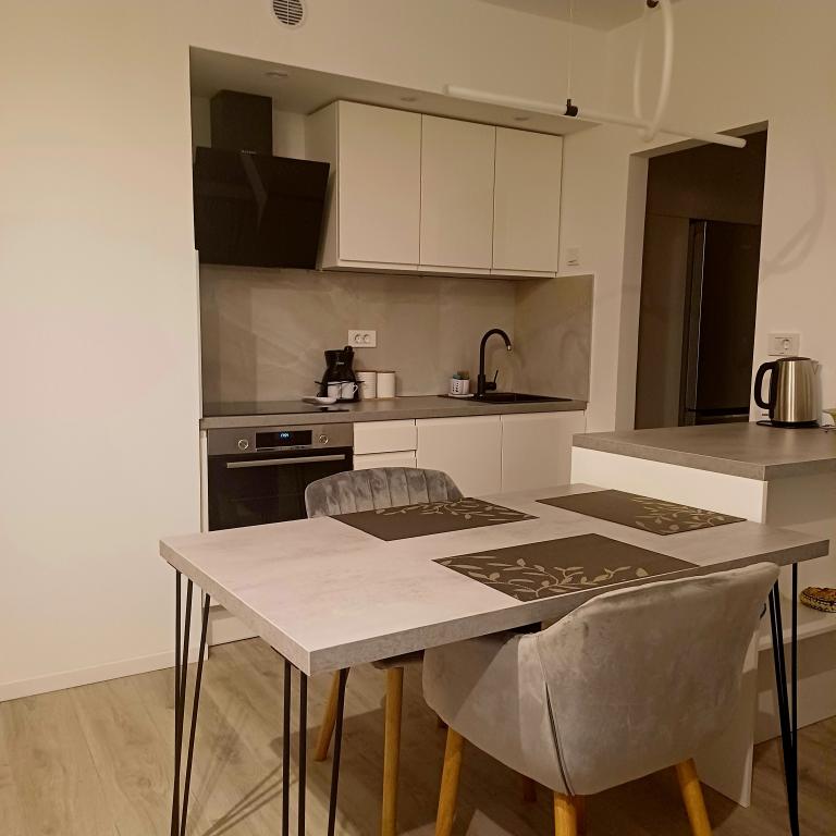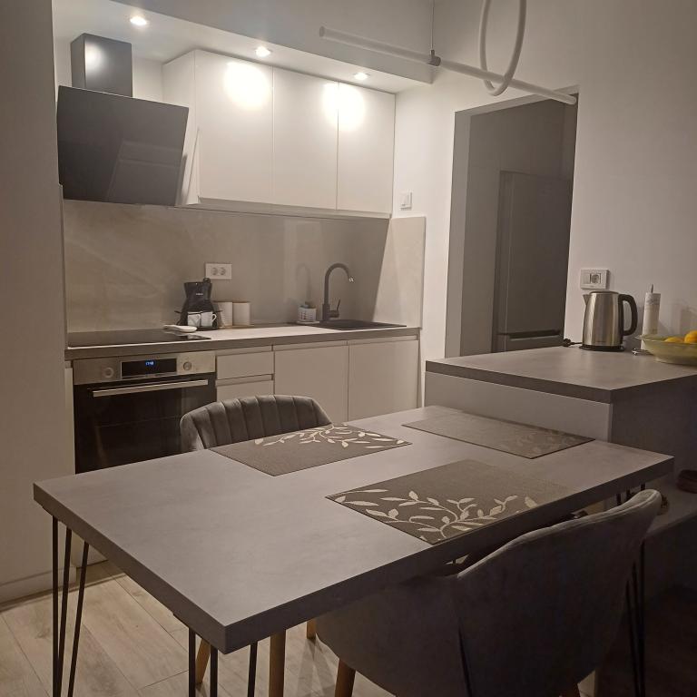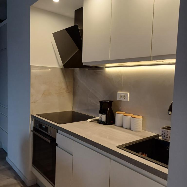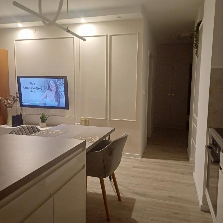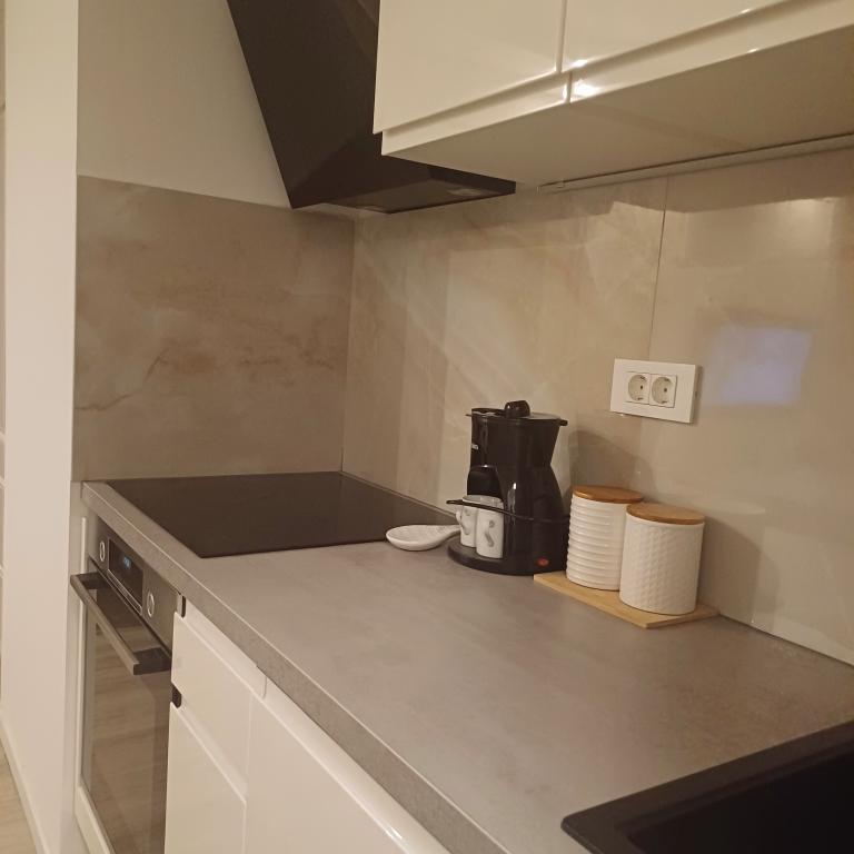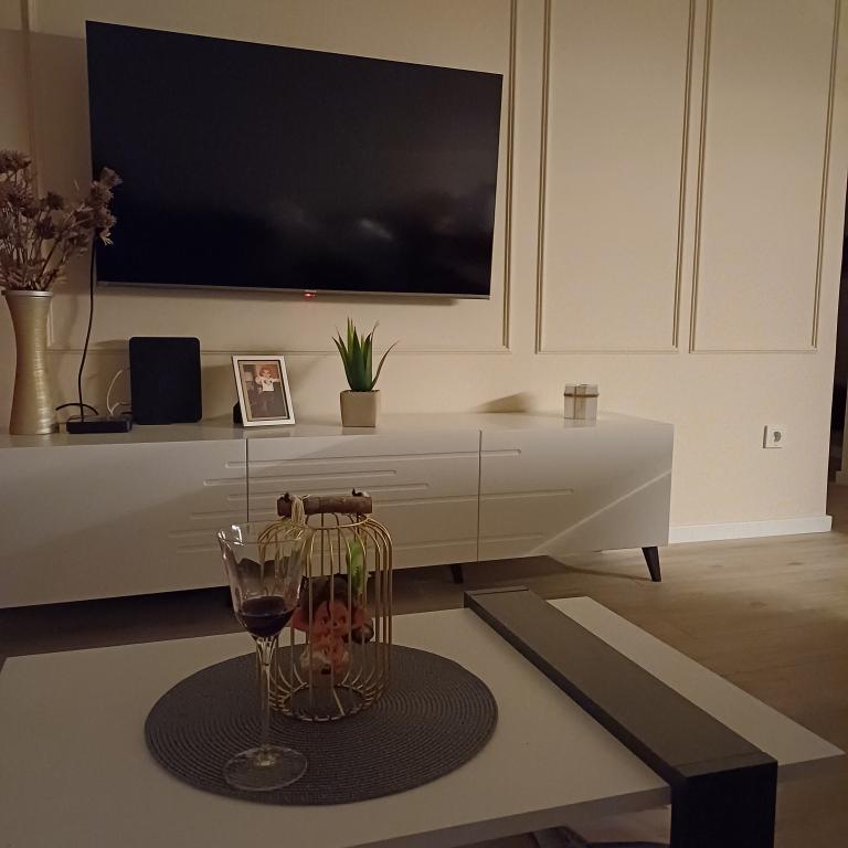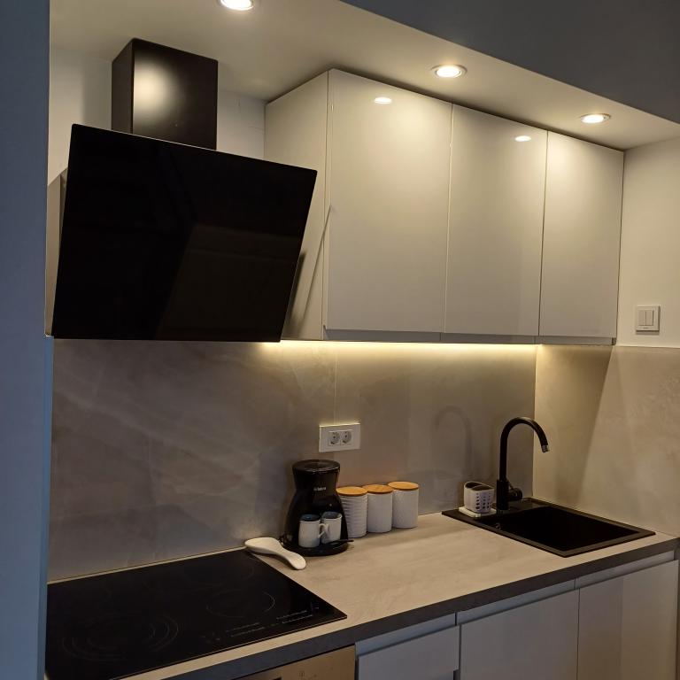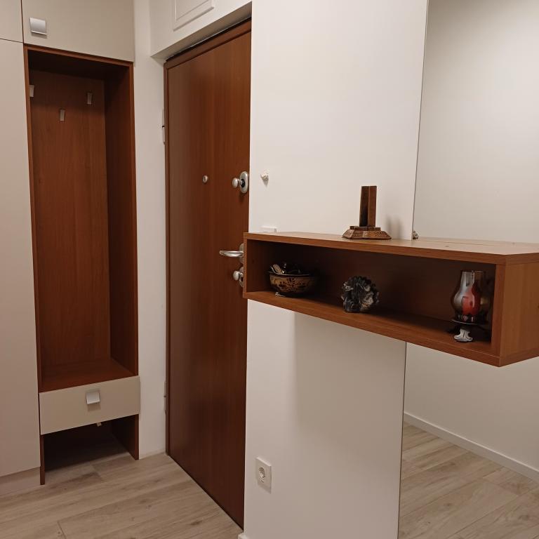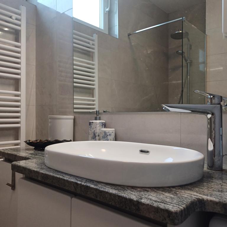 The luxury apartment is located on the 10th floor of a residential building in Šibenik, in an excellent location, 20 minutes' walk from the old city center and the city beach Banj. Luxury accommodation with a balcony offering a beautiful view of the sea and the city offers guests a pleasant and relaxing stay. The apartment consists of a spacious bedroom, hallway, bathroom with walk-in shower, hair dryer and washing machine. The living room and dining room are in a space with a modern kitchen equipped for a short or long stay and contains dishes, kitchen utensils, a stove, an oven, a dishwasher, a refrigerator, a kettle and a coffee machine. The apartment is air-conditioned, and guests have access to TV and free Wi-Fi. Public parking is located in front of the building itself. As soon as you leave the building and cross the street, at a distance of 30 m there is a grocery store, a pharmacy and a coffee bar, and a bank, post office, pizzeria, gym, hair salon, shopping center, bus station, boat dock are at a distance of 500 m. - 700 m.