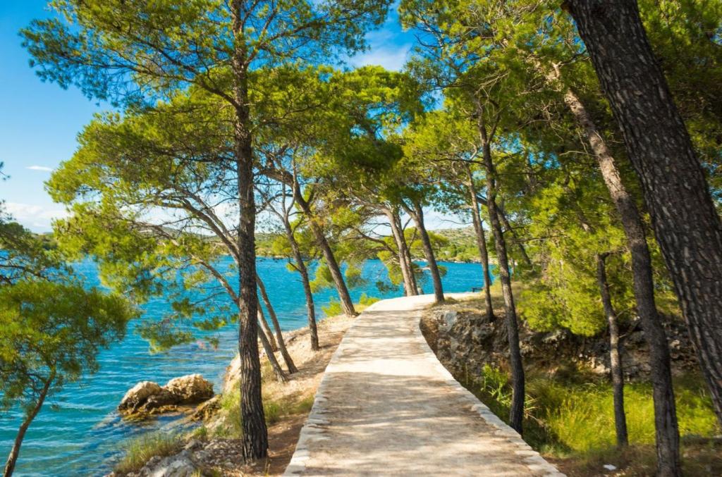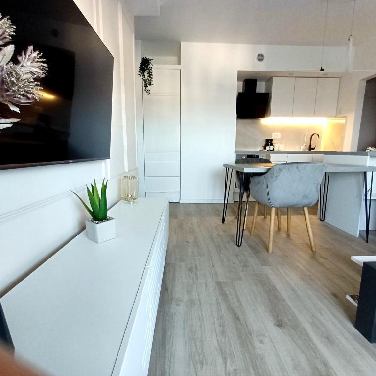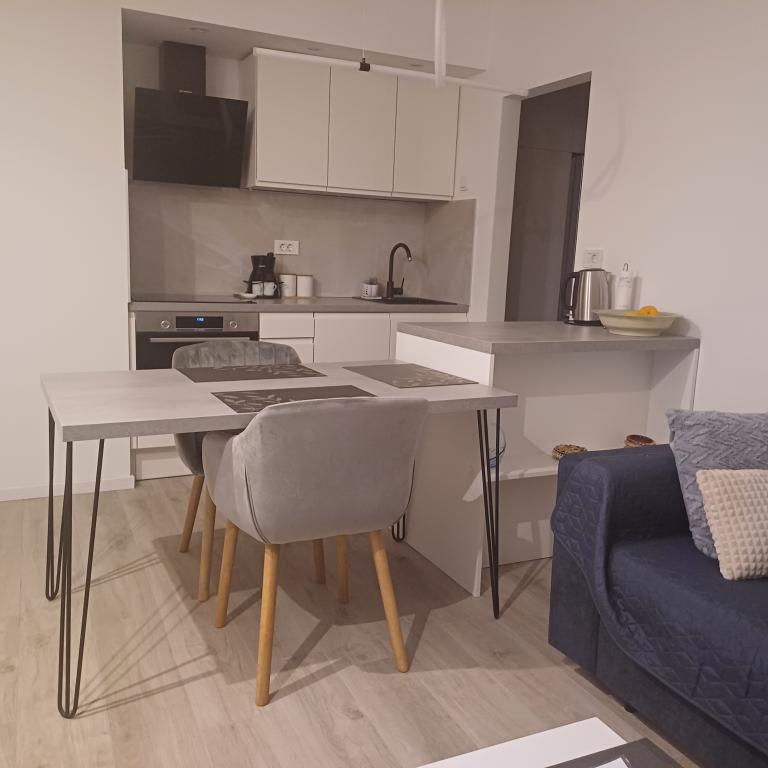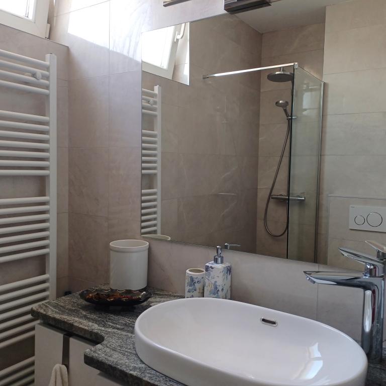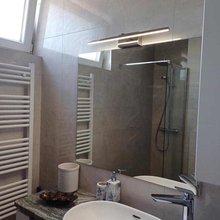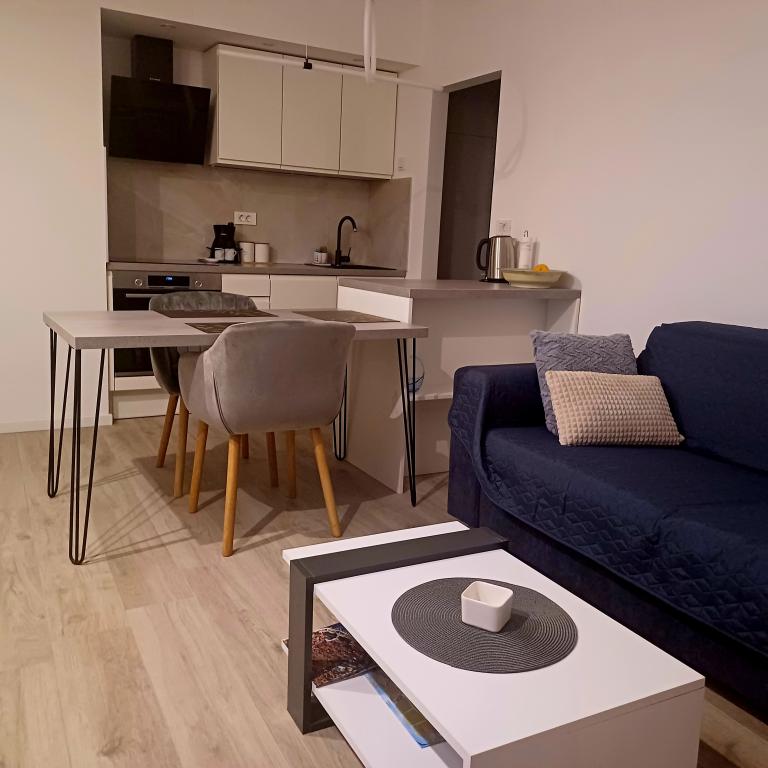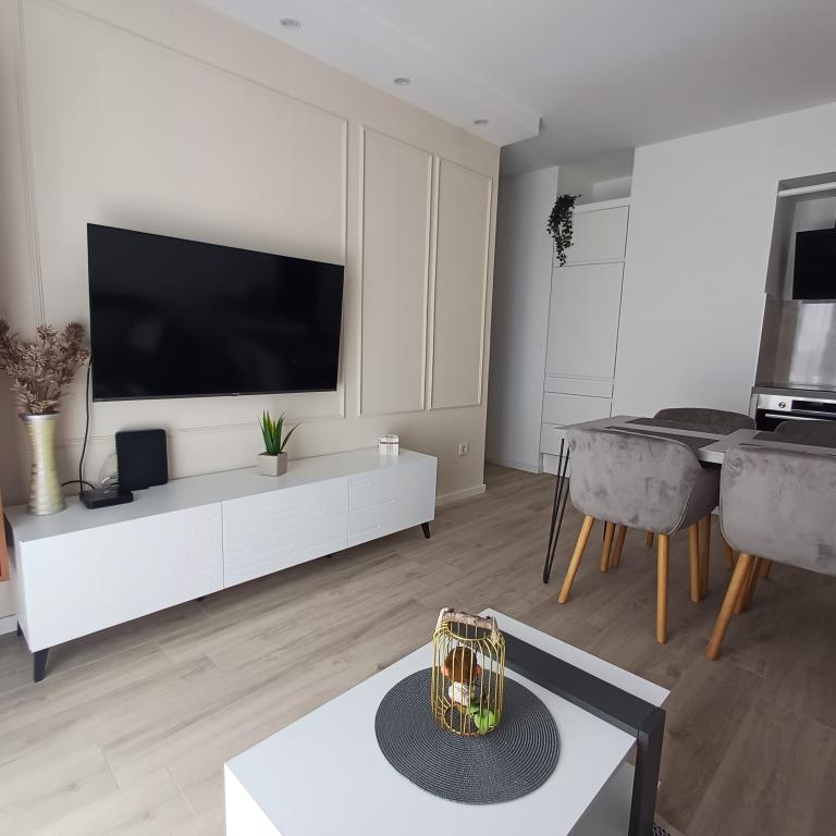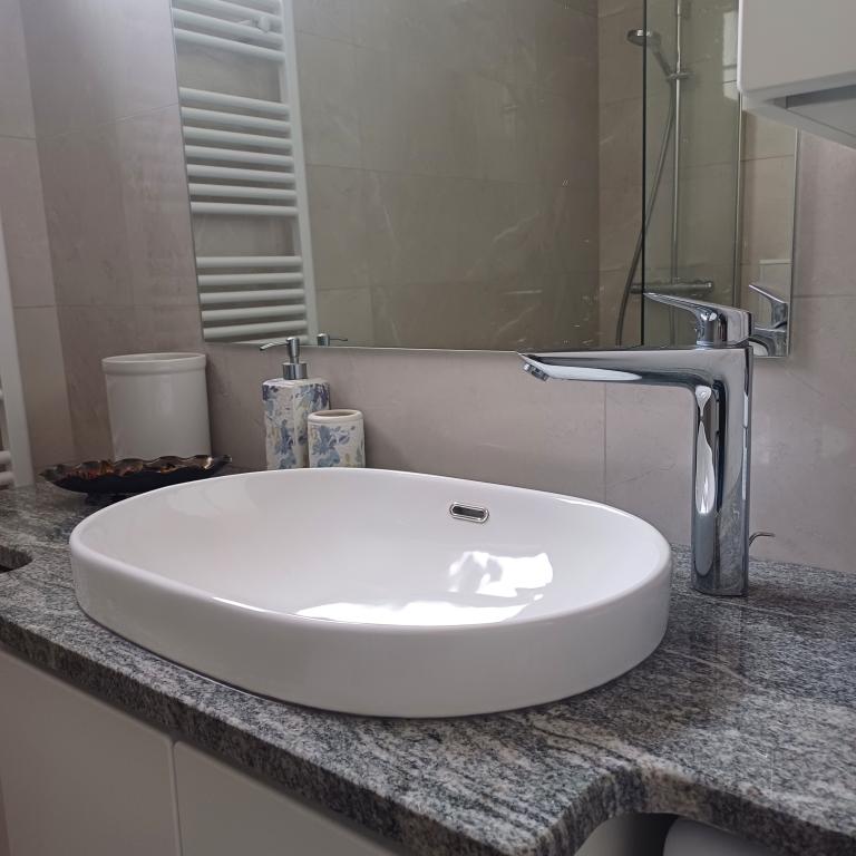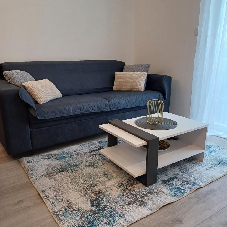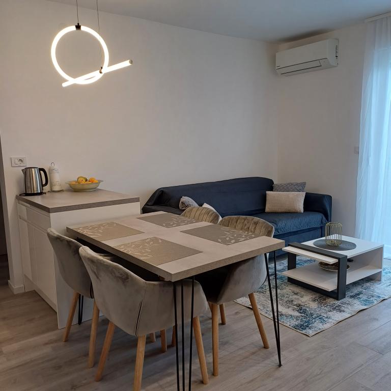 The luxury apartment is located on the 10th floor of a residential building in Šibenik, in an excellent location, 20 minutes' walk from the old city center and the city beach Banj. Luxury accommodation with a balcony offering a beautiful view of the sea and the city offers guests a pleasant and relaxing stay. The apartment consists of a spacious bedroom, hallway, bathroom with walk-in shower, hair dryer and washing machine. The living room and dining room are in a space with a modern kitchen equipped for a short or long stay and contains dishes, kitchen utensils, a stove, an oven, a dishwasher, a refrigerator, a kettle and a coffee machine. The apartment is air-conditioned, and guests have access to TV and free Wi-Fi. Public parking is located in front of the building itself. As soon as you leave the building and cross the street, at a distance of 30 m there is a grocery store, a pharmacy and a coffee bar, and a bank, post office, pizzeria, gym, hair salon, shopping center, bus station, boat dock are at a distance of 500 m. - 700 m.