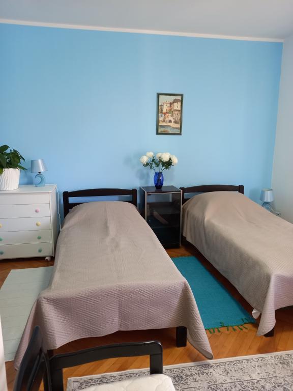 Dear guests, The apartments are part of our house, we will welcome you and give you the keys to the apartment. Each apartment has a safe for keeping valuables, and the large apartment with 4 stars has a dishwasher in the kitchen. The whole building has central heating, suitable for rent and in the winter months, there is a carbon monoxide detector. Please keep the windows closed while the air conditioning or heating is on. WI-FI wireless internet access is excellent and free of charge. The parking lot is in our yard, where you can park two cars, but which are of normal width (just not American type and not sporty low, due to the configuration of the terrain). Two cars can be parked in front of the building on the street, parking is allowed. Pets are not allowed. We have dogs and we would not want a problem to arise between our dog and the guests' dog. The guest accommodation is disinfected between each guest stay and is closed after cleaning. Welcome drink included in the price.