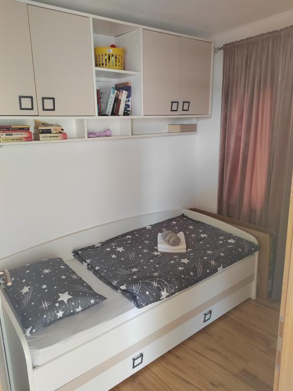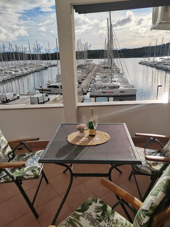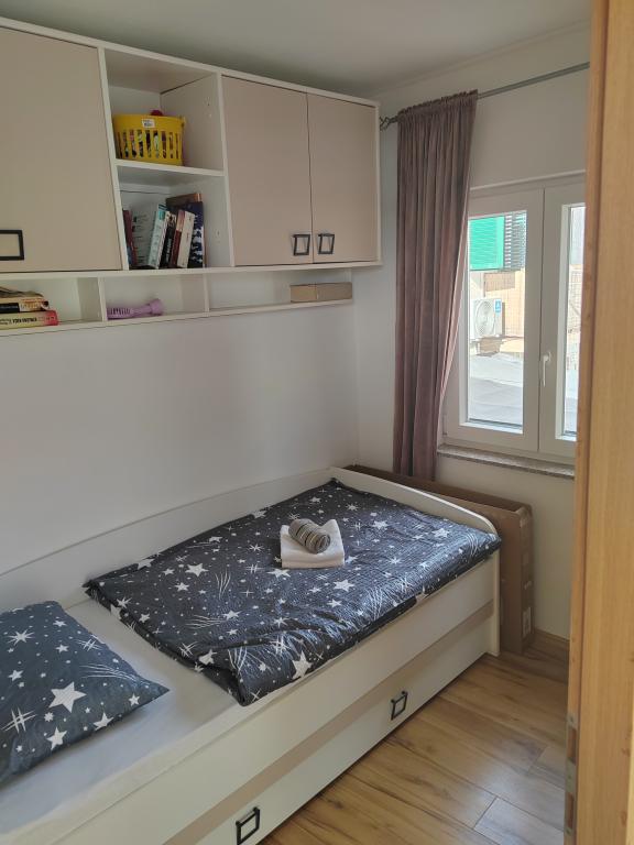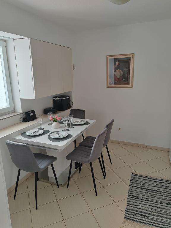 House for up to 5 people with a balcony and a beautiful view of the sea and yacht marina. Guests have parking, free wifi, air conditioning, TV with plenty of channels, Netflix... You only need a 5-10 minute drive to the first beach. Solaris is nearby where you have an indoor and outdoor Aqua park, so it works all year round, the city center is a 10 minute drive away, we have 4 fortresses that are beautiful to visit, two national parks, and much more. The house is ideal for a family vacation and relaxation with a view of the sea. The quiet location allows for a pleasant stay, and the balcony is perfect for morning coffee or evening relaxation. I am always at your disposal for any additional information.