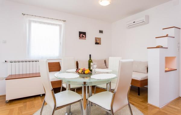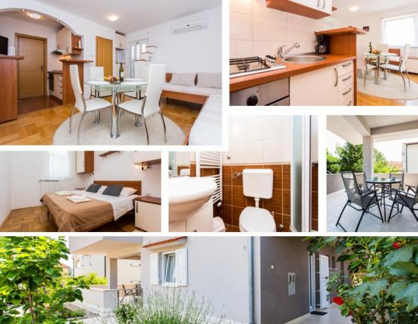 Our family house \Villa Maslina\ is located in a quiet part of Silo, on the east coast of the island of Krk. It has four modernly decorated apartments of type 2 2, four star category. They are the same size and each has a large terrace overlooking the sea, bathroom, bedroom and kitchen and living room. They are equipped with air conditioning, central heating, LCD TV with satellite receiver, safe, alarm system and wireless internet. In the courtyard in front of the house, one of the six shady parking lots will protect your vehicle from the hot sun. An external video surveillance system is also there to keep your property safe. We have prepared a carousel, swings, bottles and other facilities for your children so that they can enjoy the game in nature. In the gazebo with a large fireplace and a small kitchen, built behind the house, you can enjoy grilling. We invite you to visit us and feel all the positive energy that we have built into the home and garden.