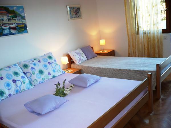 Villa-Apartments Žana is located in a small, picturesque and idyllic place Šilo on the island of Krk, in a beautiful family house situated in a quiet, green and pleasant environment, in a location just a few minutes walk from the beach and crystal clear sea, which makes our accommodation ideal for a family vacation but also for a romantic and relaxing or sports and recreational vacation. We can offer you 3 fully equipped apartments: App. Lavanda A4 (A4 + 1) for 4-5 people, App. Rosa A3 + 1 (A3 + 2) for 3-5 people, App Ruzmarin A3 + 1 for 2-4 people. In all three apartments it is also possible to accommodate 2 people. Maximum capacity of the facility: 12-13 people. Our apartments have air conditioning with cooling and heating, TV SAT, WLAN internet. Each app has its own large terrace with a view of the sea and / or garden. Guests can use the outdoor barbecue, garden terrace and garden. Parking is provided for all guests in the yard of the facility. We look forward to your arrival.