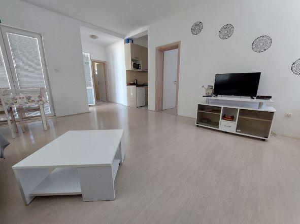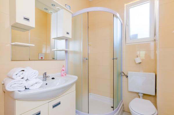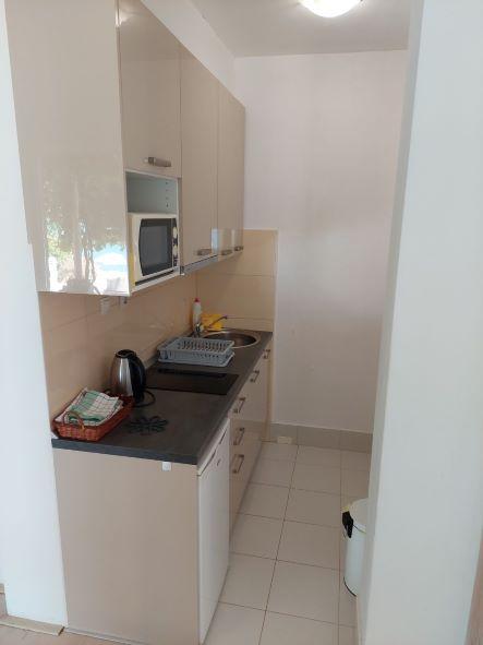 Fully equipped apartments according to the new categorization conditions. Located in a gentle and quiet bay with a sandy beach. The facility is located right next to the beach, approx. 5 meters. The facility is a new building built in 2011. The center of the town can be reached by car or a 30-minute walk along the road overlooking the sea.