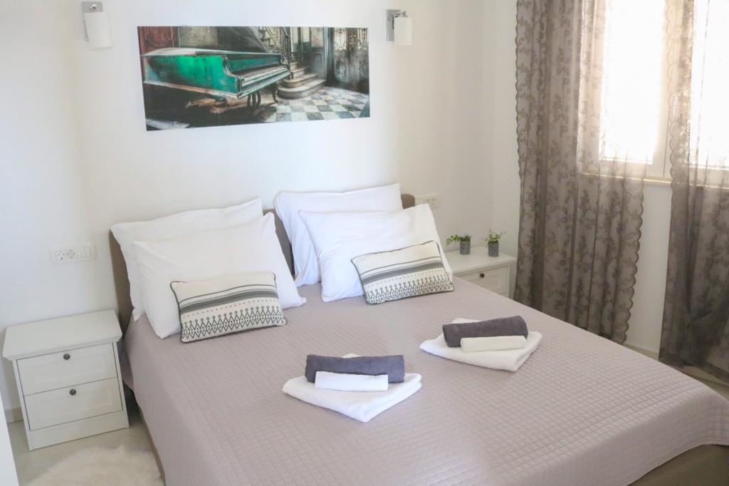 Everything you need. Baby toys. They put fruit, wine, beer, water in the fridge. You have towels both for the beach and on the beach, which is standing in front of the door of your sunbed and umbrella. It has a grill and everything you need to prepare it. The sea is crystal clear and warm. The sea is calm and great for SUPing... Beautiful nature and a wonderful sunset. The price is great, but for everything they offer, it could be more expensive because it is absolutely worth it. Thank you for a wonderful break.