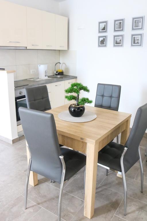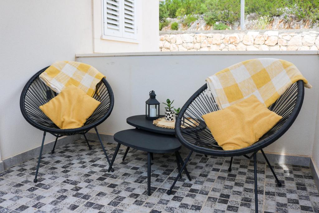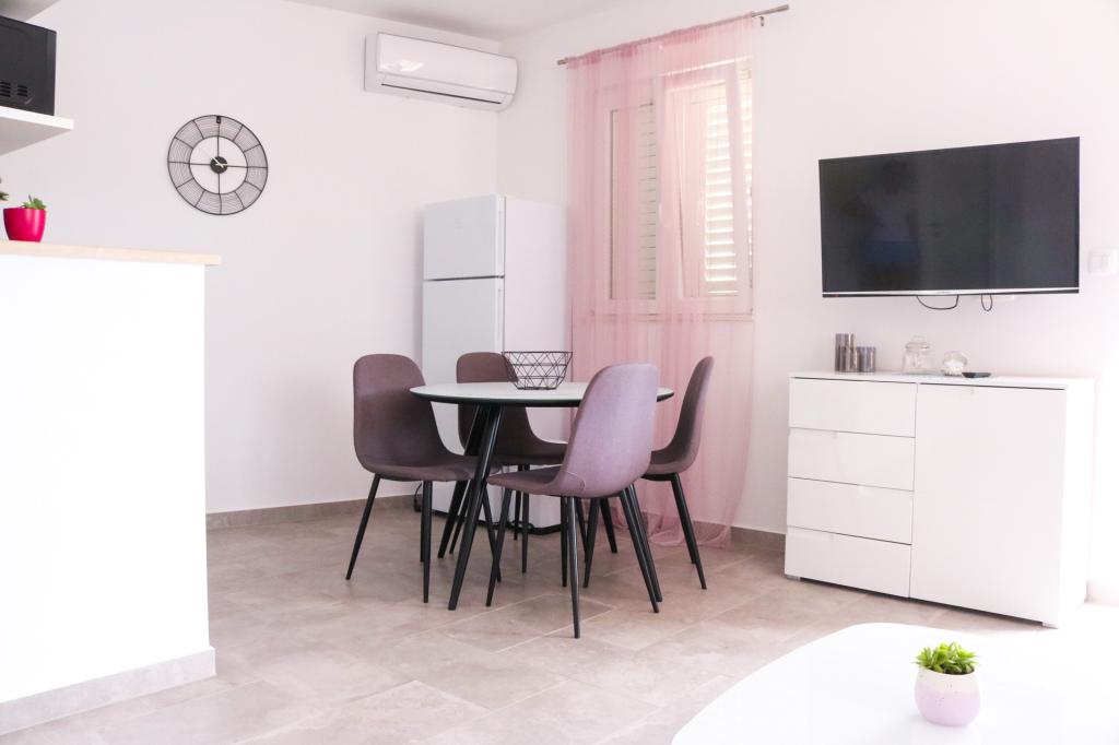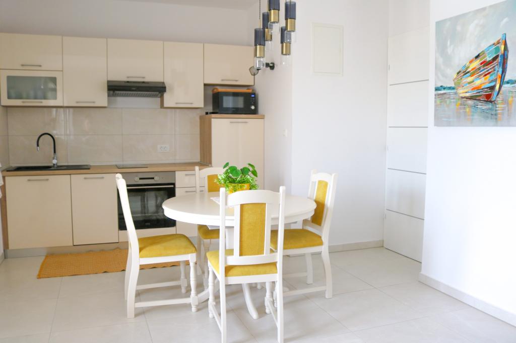 Fully equipped apartments according to the new categorization conditions. The apartments are modernly furnished. Located in a quiet bay. The facility is located right next to the sea. The building was newly built in 2022. You can get to the center, which is only 4 kilometers away, by car, bicycle, highway or through the town of Slađenovići.