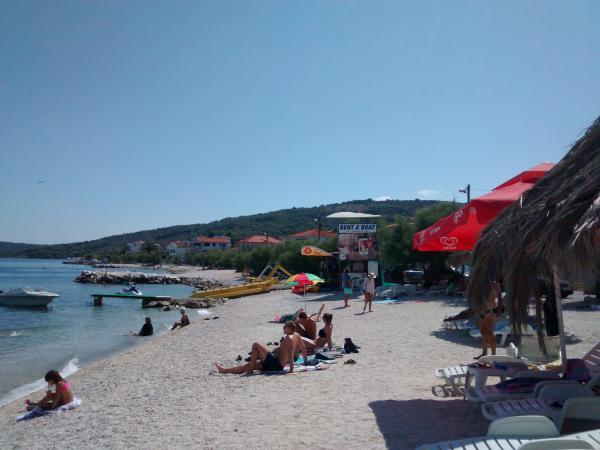 Excellent apartment with everything needed for a family holiday with a balcony overlooking the sea. Perfect beach 2 minute walk away with many activities. Close to major cities for sightseeing - Split and Trogir. And very pleasant host who cares for their guests. I highly recommend it.
