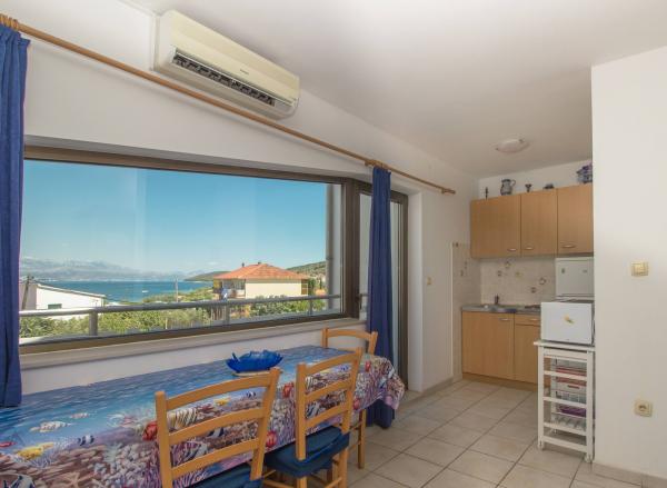 I heartily recommend. A friendly hostess, an apartment equipped with all the necessary things, peace and quiet and a great view from the balcony. Close to the beach and a bus goes to Trogir. I've already been twice and probably it's not over yet.. because it's worth it.