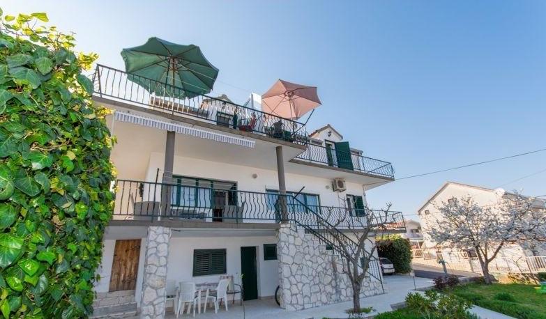 Apartments Anka are located in Slatine on the island of Čiovo. They are 5 km from Trogir. They are connected to Split by a boat line. The apartments are located on the first and second floors of a family house. The apartment for 6 people is located on the first floor and consists of 3 rooms, living living room, kitchen and bathroom. On the second floor there are two apartments each with two rooms, a kitchen and a bathroom. All apartments have terraces with a wonderful view of the sea. All apartments have a separate entrance. The house is surrounded by Mediterranean plants and a garden for children. Guests parking and use of the outdoor grill are provided.