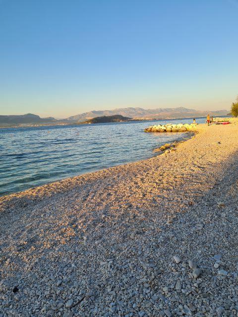 The 3-star Boban Apartments are located in Slatine on the island of Čiovo, 10 meters from the sea. In front of the apartments is a pebble beach, ideal for swimming. The terraces of the apartments offer a beautiful view of the beach, the sea, the Kaštela Bay, Split, Trogir and the town of Slatine itself. The apartments are comfortable, equipped with satellite TV, internet and air conditioning. In the garden of the house there is a summer shower and a grill that is available to guests. Parking is provided for guests of the apartment. Slatine is a small fishing village where you can still buy fresh fish, local vegetables and olive oil. Festivals and sports events are held in the summer. Restaurants, pizzerias, taverns, coffee bars and shops are located in the very center of the town, just a 5-minute walk along the sea from the Boban family house. On the south side of the island of Čiovo, only 4 km away, there is the famous shrine of Our Lady of Prizidnica, a shrine that is definitely worth visiting. Slatine on the island of Čiovo is 8 km from Trogir and 35 km from Split, both cities under UNESCO protection.