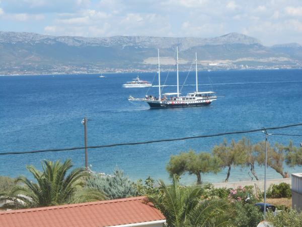 Residential tax is included in price.Guests have at their disposal a private car park, garden, grill with large table in the shade, outdoor shower, quiet environment. The house is situated in the area of attractive beaches that stretch for several kilometers. The nearest beach is in front of the house, about 50 meters away suitable for children. The town center and all the facilities necessary for a pleasant stay and an active holiday are about 800 m away. Slatine is a tourist boat connected with the nearby towns of Split and Trogir. Both towns date from antiquity, under UNESCO protection, famous for their monuments (eg Diocletian's palaces in Split, 1700 years old). One-day or half-day excursions can spell wonderful Dalmatian islands and towns, national parks and natural beauty.