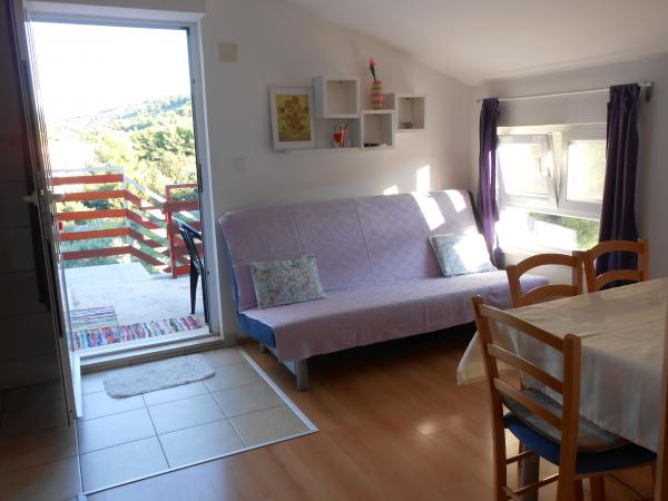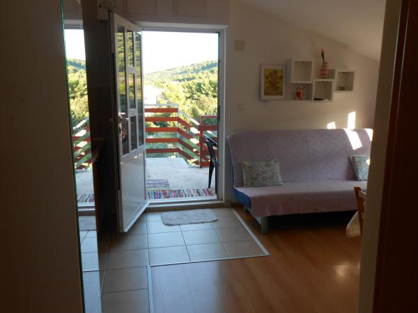 We felt very comfortable at Ms. Ivanka's place, the apartment was clean, well furnished, all the windows had nets. The host is a very nice lady, she provided us with everything we needed. The house is really close to the beach and at the same time under the forest, so most of the time there was no need for air conditioning, there was a pleasant air from the mountains (and we lived in the attic). The beach is clean, pebbly, unpopulated. Proximity and good accessibility of two beautiful historical cities - Trogir and Split (by car, public transport, boat). A ticket for the boat Slatine - Split costs 5.50 Euros