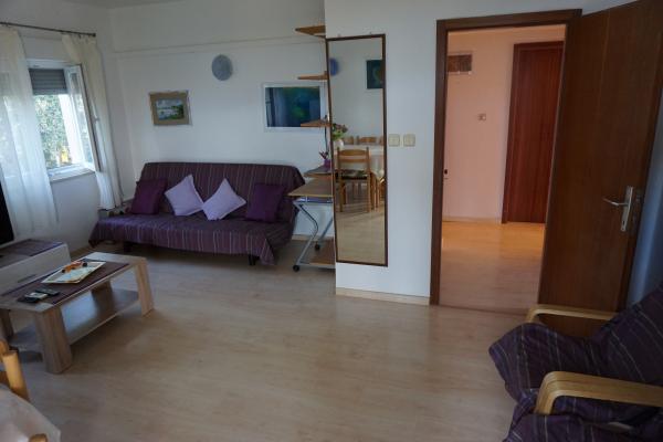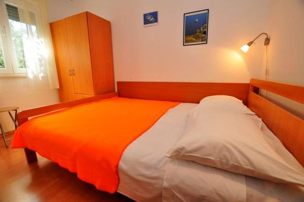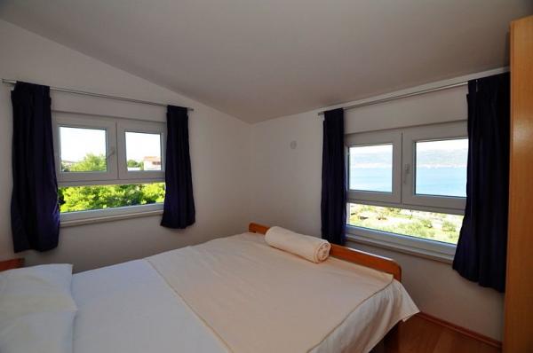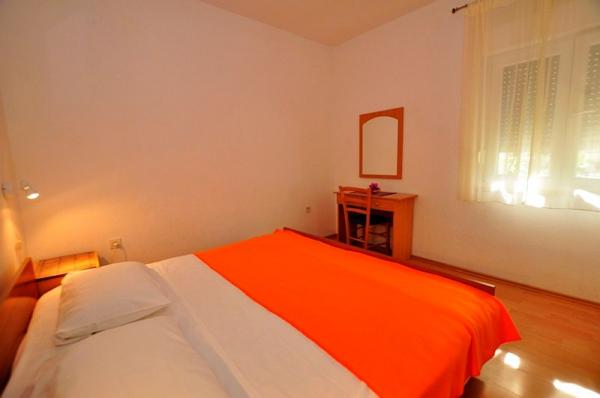 The apartments are located in a family house. A total of 16 people can be accommodated in 3 suites. Apartment A1 (6 2), 65 m2, for 8 persons, 3 bedrooms (two with double bed), living room sofa bed for 2 persons, fully equipped kitchen, bathroom with tub and toilet, separate WC, large organ terrace 40 m2 with sea view. It is fully equipped and air-conditioned. Situated on the ground floor of a family house and facing the sea. Suitable for two families with children. Apartments A2 (2 + 2) a, 35 m2, for 4 persons :. Bedroom with double bed, living room / kitchen with corner bed for two persons, bathroom with shower cabin,, terrace. Fully equipped and air-conditioned. Situated on the second floor of a family house, facing the sea. Apartment A2 (2 + 2) b, 24 m2, for 4 persons. . Bedroom with double bed, living room with sofa bed, fully equipped kitchen, bathroom with shower, terrace with beautiful sea and hill views, located on the second floor. .