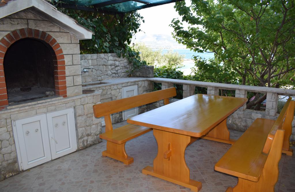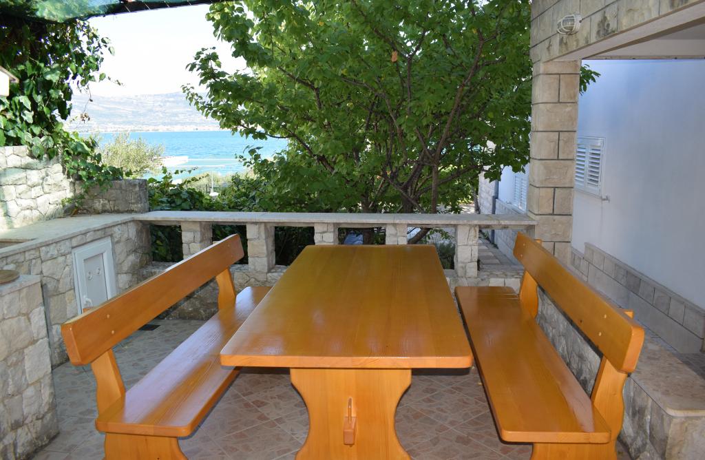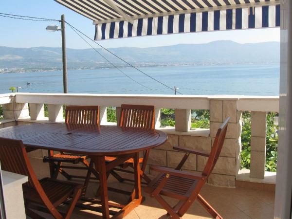Apartment consistent with the description and photos. Well equipped. 2 bedrooms, a room with a dining room with 2 sofa beds, a kitchen (there is everything) and a bathroom. A beautiful view from the room and balcony. On the balcony a table with chairs, deckchairs and a dryer. Very close to the beach, clean, turquoise water. On the beach a bar, shower. Rocky beach, gravel beach and concrete places. Very close to Trogir and Split - water taxis or public transport. To the supermarket about 300 m, the bread brings to the neighboring house a doorstep bakery - every day around 9 am. The owner takes care of guests, nice, smiling. We highly recommend it!
