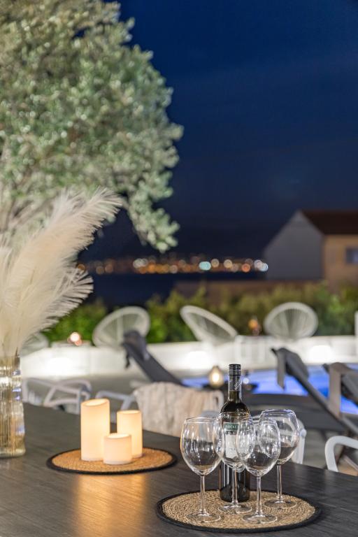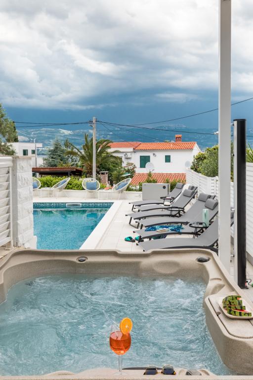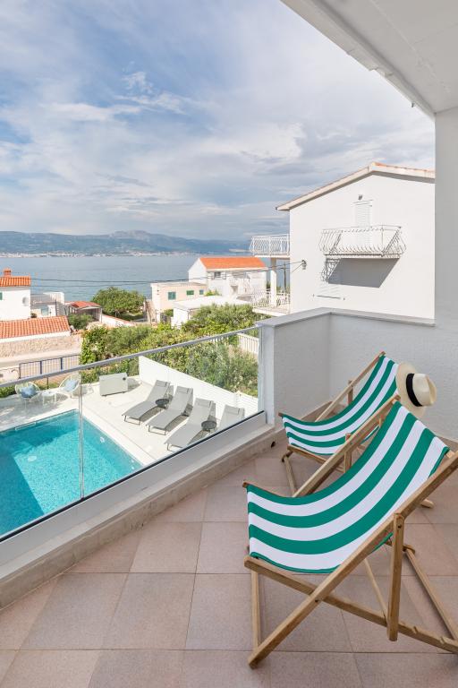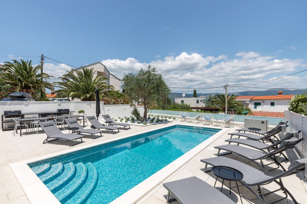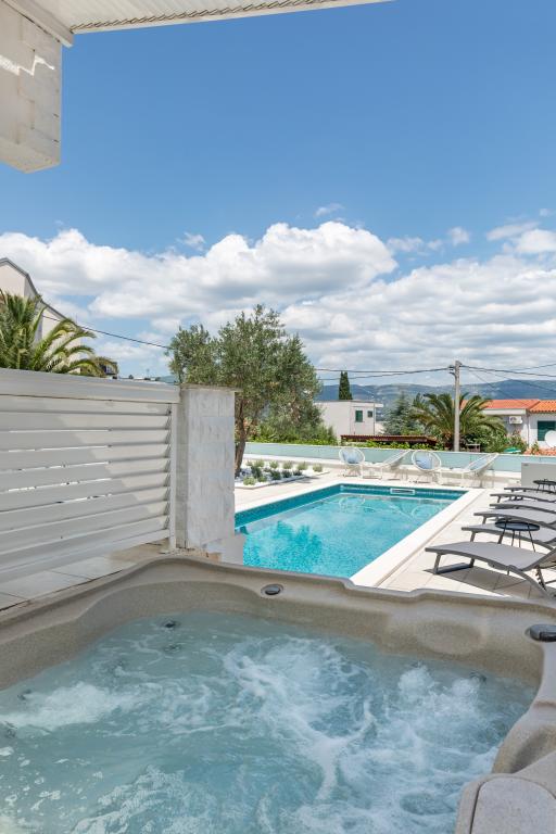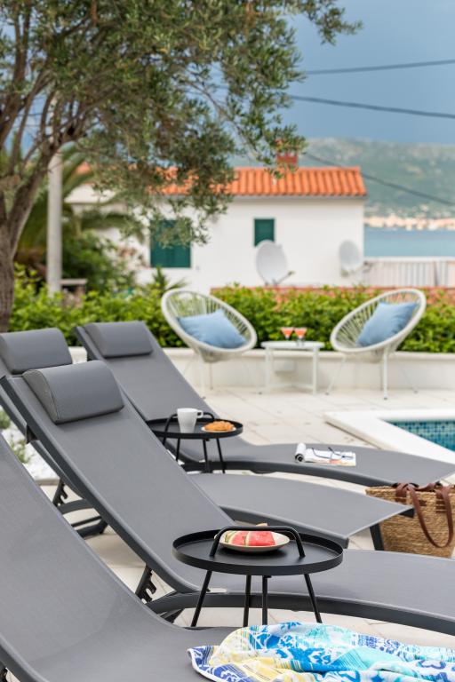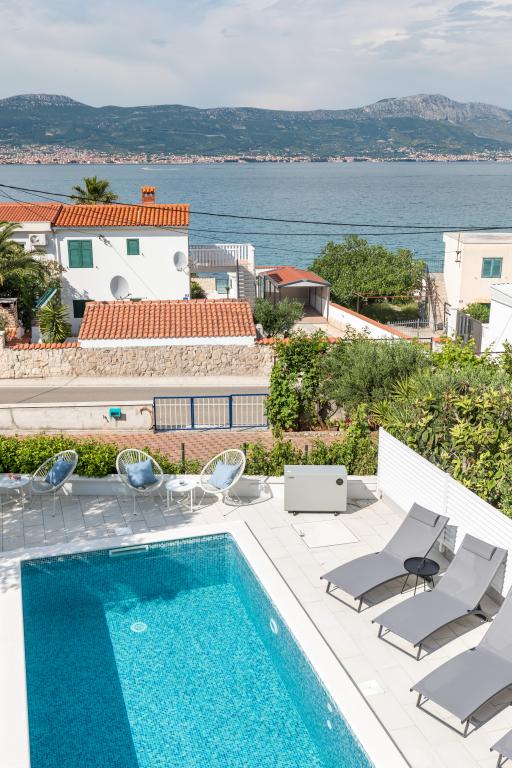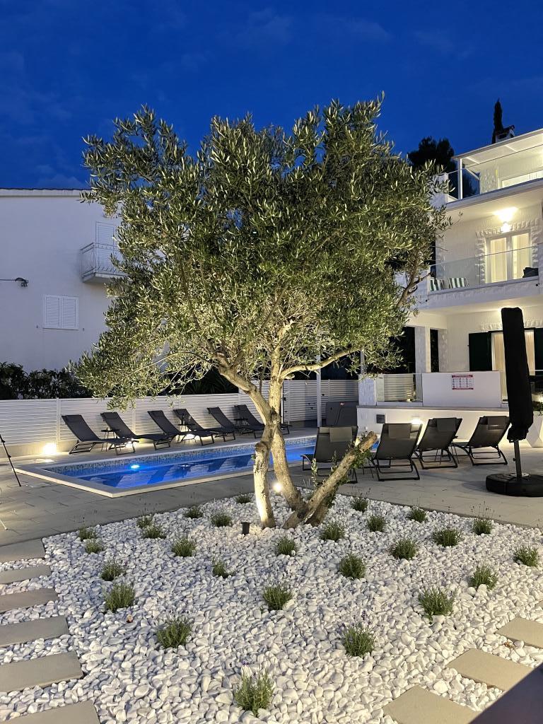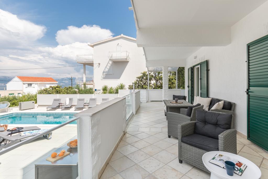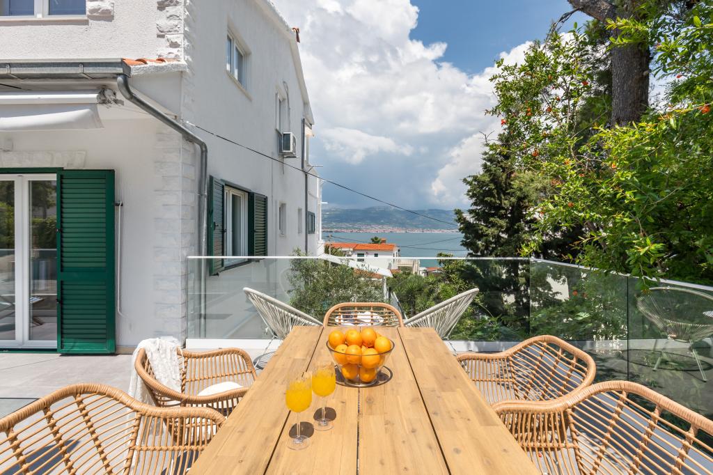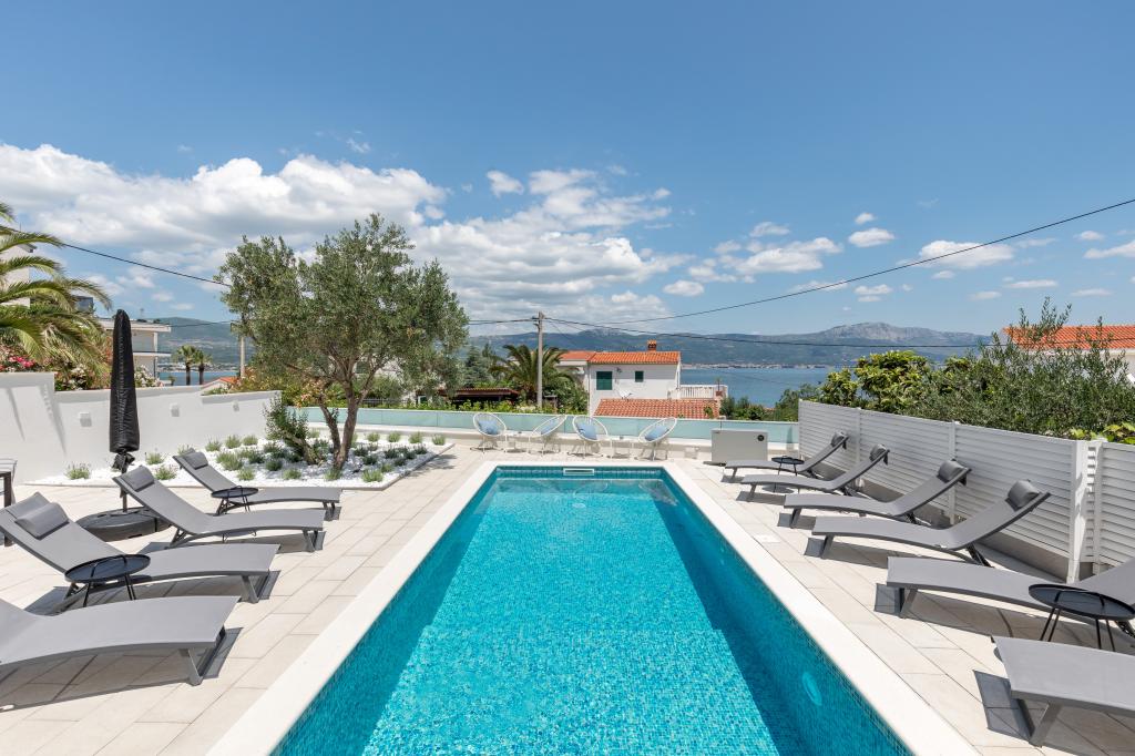 Residential tax is not included in price.We have just returned from our summer resort Slatine. To avoid the "crazy crowds" on the Croatian highway and at the toll booths, we had to cut our annual vacation short by one day and set off again on Friday. It was a heavy heart because we were all very happy with this wonderful accommodation. There were 5 adults and 3 children in apartments A and E. Everything is beautifully newly furnished, large rooms so that everyone can enjoy their privacy. Great pool and also a massage tub. A nice table with comfortable armchairs and also enough lounge chairs. Next to the pool there is a small outdoor kitchen with 2 charcoal grills. The beach is 2 minutes away, with white pebbles and therefore ideal for children and the elderly. It is not crowded. The apartments are occupied by friendly guests and there are enough parking spaces available. All in all, everything you could wish for for a great holiday, apart from the traffic jams - but there is also Split airport directly opposite on the mainland. Anyway, thank you to Marina for our lovely stay. The Schumich family from Austria