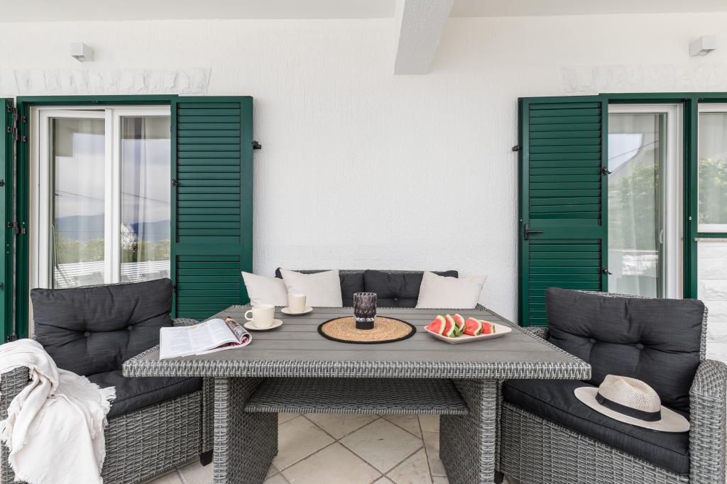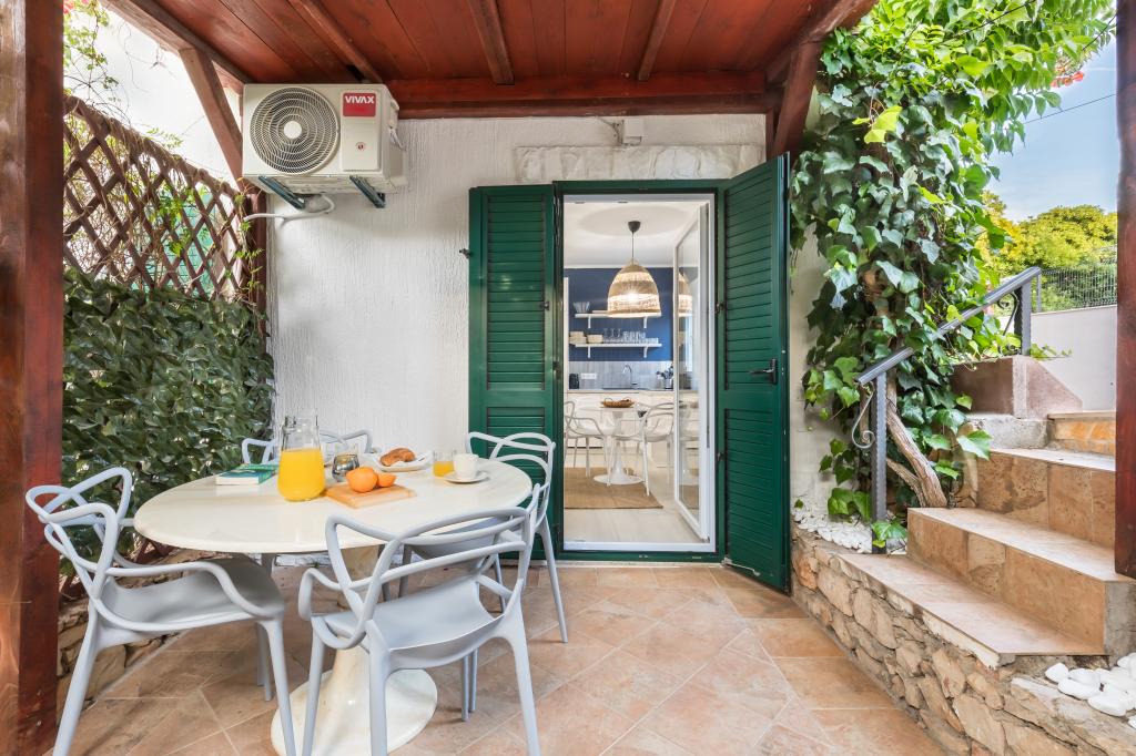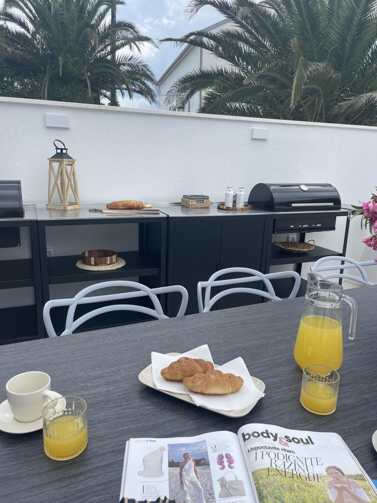 The week at Marina went by far too quickly. This is the second time we came to Croatia and one big reason was the owner Marina. We left such a positive impression from the last time that we felt it safe to book accommodation directly from him. This accommodation was more than we expected. The swimming pool in the yard was a complete surprise. It was wonderfully peaceful there. It was a very short distance to the beach and you could take a beach chair there with you. It was also good to be on the beach. We were in two different apartments during our vacation. The first apartment had a jacuzzi, where it was wonderful to spend time in the evening. The advantage of the second apartment was the shady, private yard, where in the evenings we played cards with the whole family. The apartments were really clean and the air heat pumps cooled the interiors wonderfully. The outdoor spaces were also in really clean condition all week. We did not use the barbecue area. The grills are charcoal grills and would have required the purchase of coals and other lighting accessories. Because of the week, we didn't bother with it. The owner is really friendly and always ready to help. We will definitely come again.